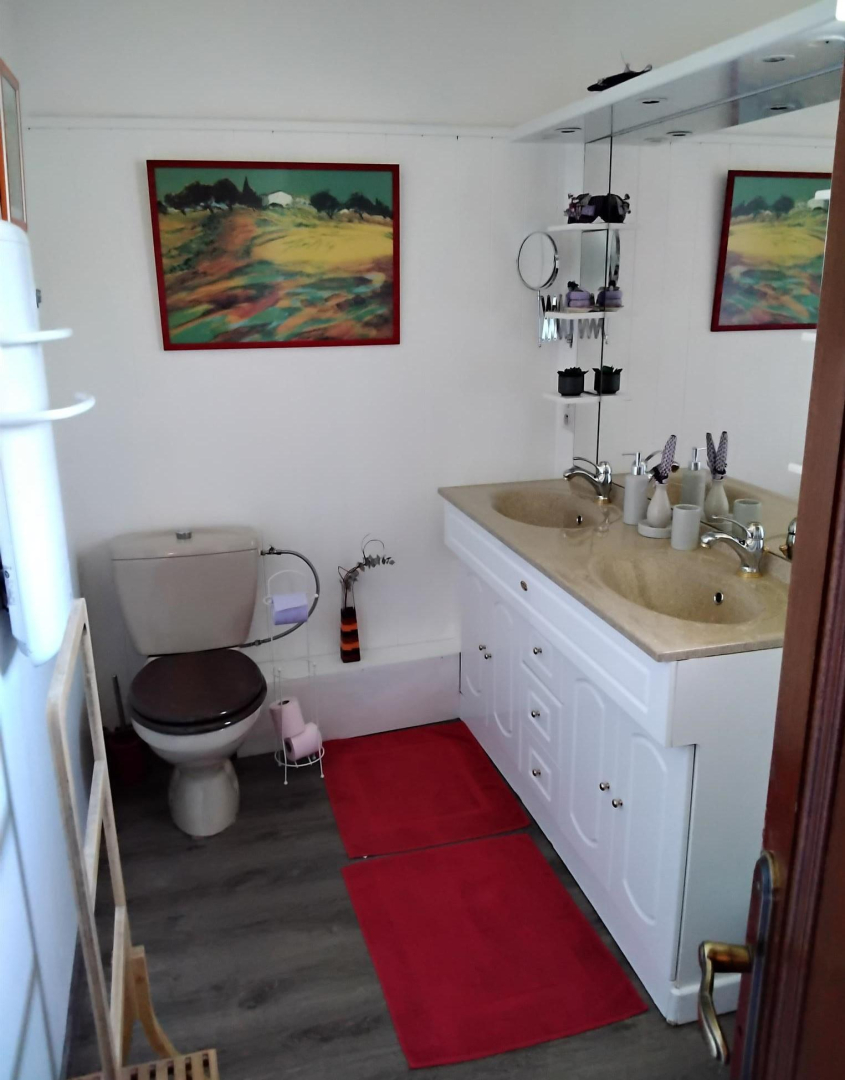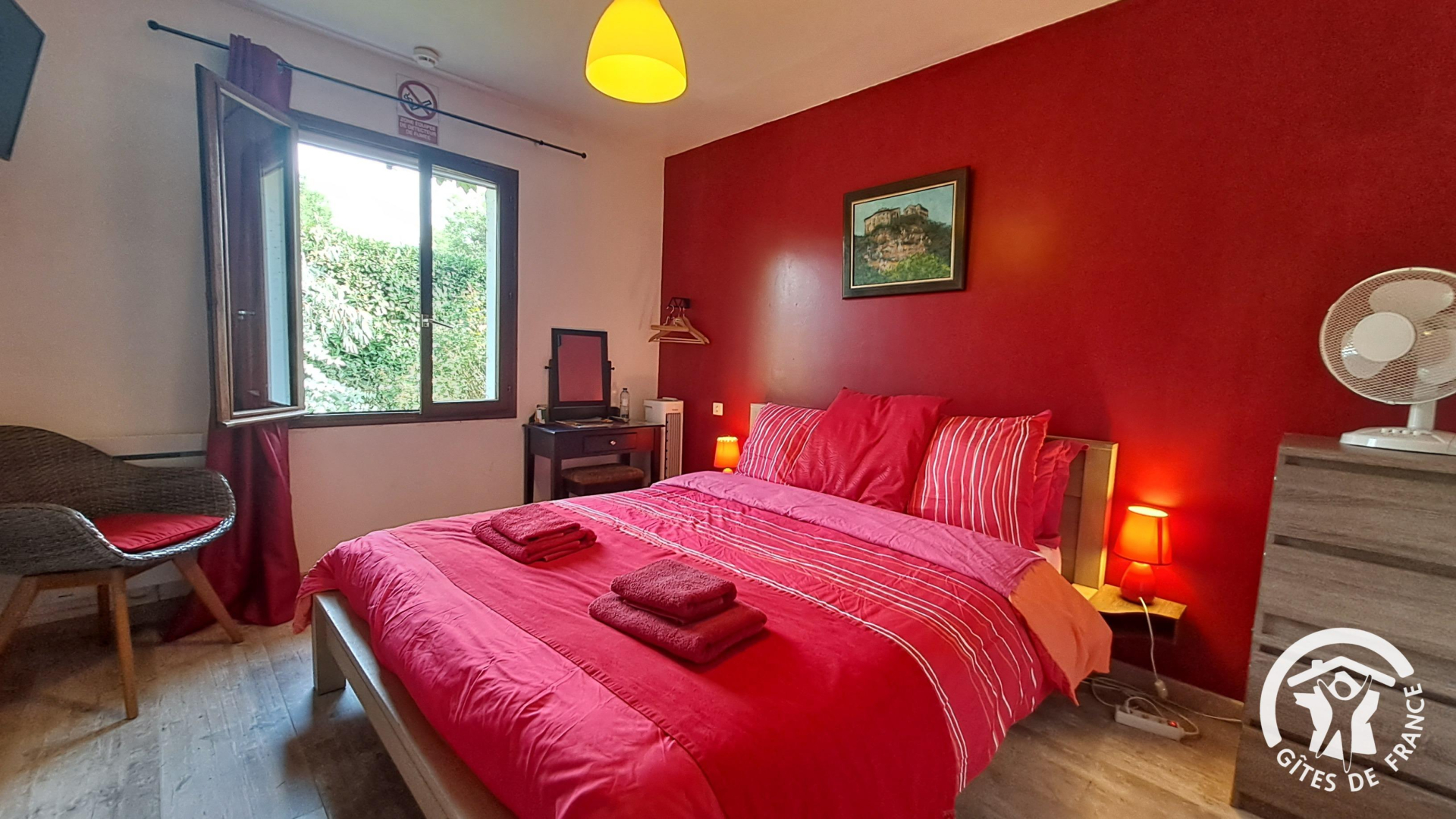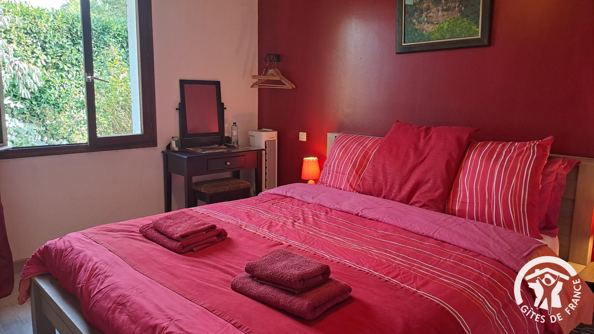 – Chambre Rouge pour 2 personnes également, avec lit double en 160x200cm et salle d’eau (douche, vasque, wc).
