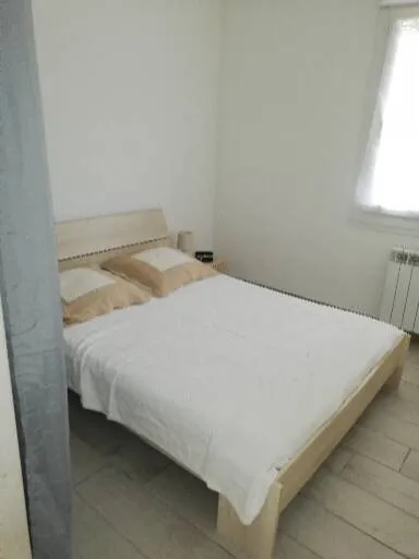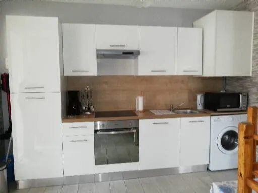 Meublé situé au 1er étage, entièrement refait à neuf et à proximité de l’établissement thermal. Il se compose d’une cuisine toute équipée (frigo-congélateur, four, micro-ondes, plaques vitrocéramiques, lave-vaisselle, petit électroménager complet, lave-linge) ouverte sur le séjour (canapé, fauteuil, TV, WIFI). Il dispose de 2 chambres meublés en lit 140, d’une salle d’eau avec une grande douche à l’italienne et d’une terrasse (salon de jardin, transats et barbecue). Parking privé.