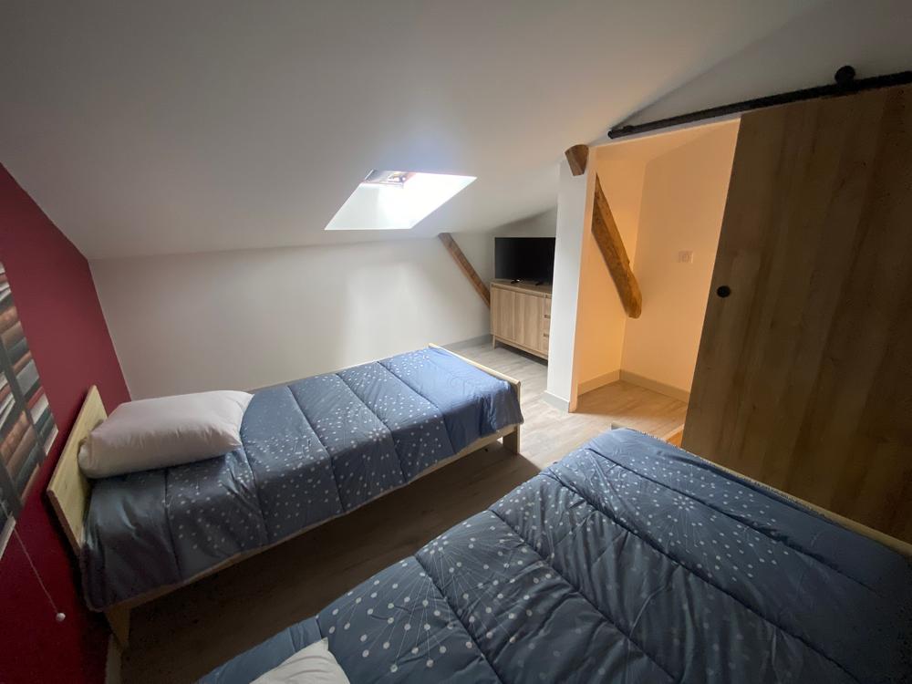 Au rez-de-chaussée, le logement comprend une pièce à vivre avec salon (5 fauteuils, table basse et TV), un espace cuisine repas (table haute avec tabourets), éléments de cuisine intégrés (lave-vaisselle, lave-linge, four, micro-ondes, réfrigérateur, congélateur). Au 1er étage, une chambre (1 lit 140, 1 lit 0,90, TV), une salle d’eau avec sèche serviette chauffant, un wc indépendant avec lave-main. Au 2ème étage avec accès par échelle une chambre sous pente avec 2 lits 0,90 et TV. Wifi dans le logement, climatisation réversible dans toute les pièces. Linge de lit et de toilette fournis en option.
