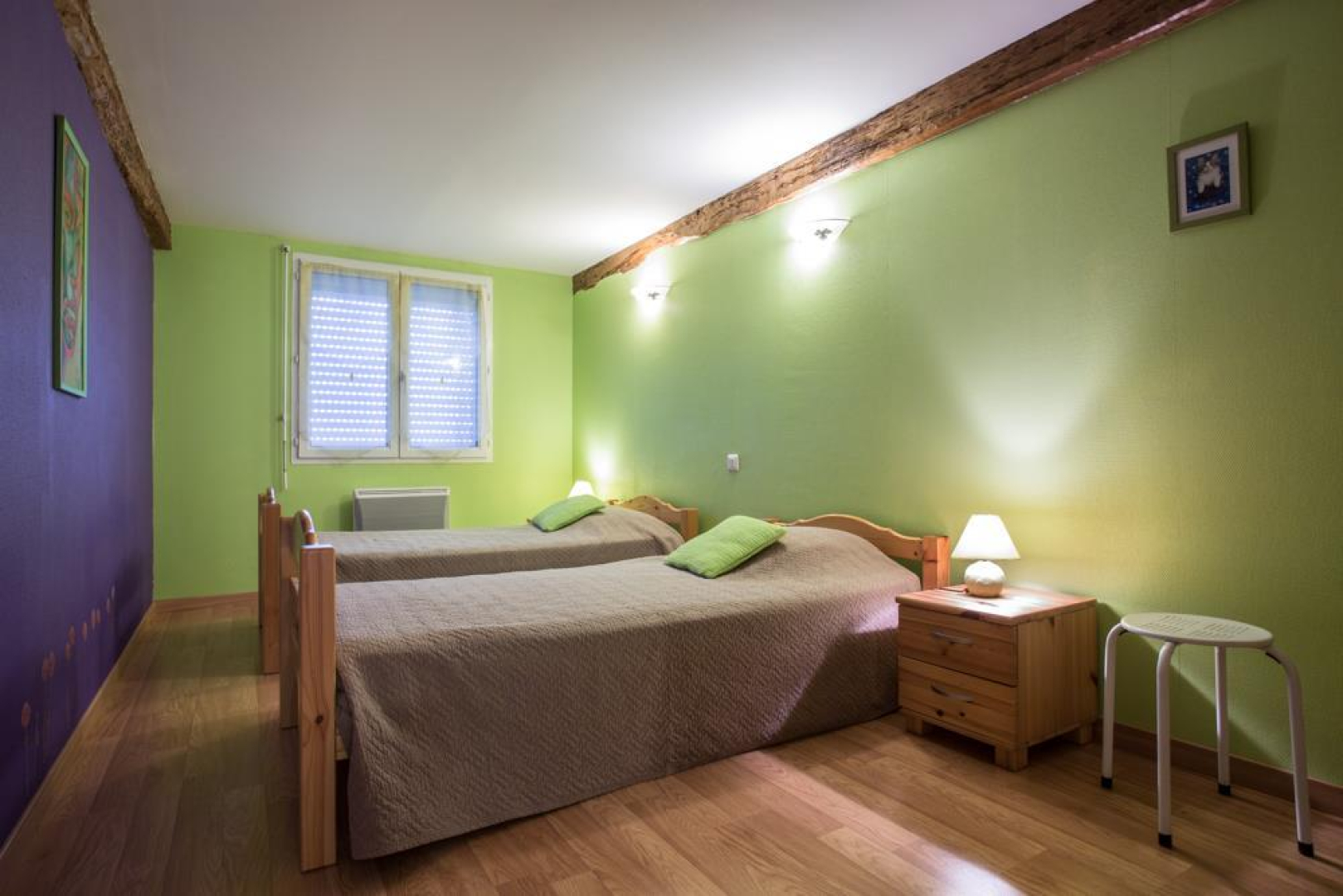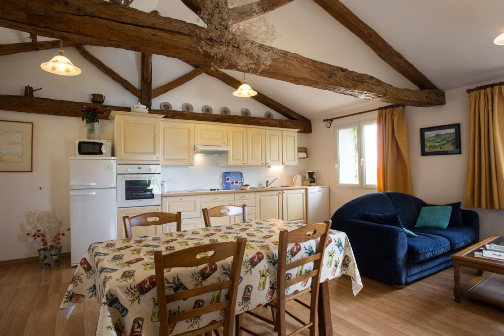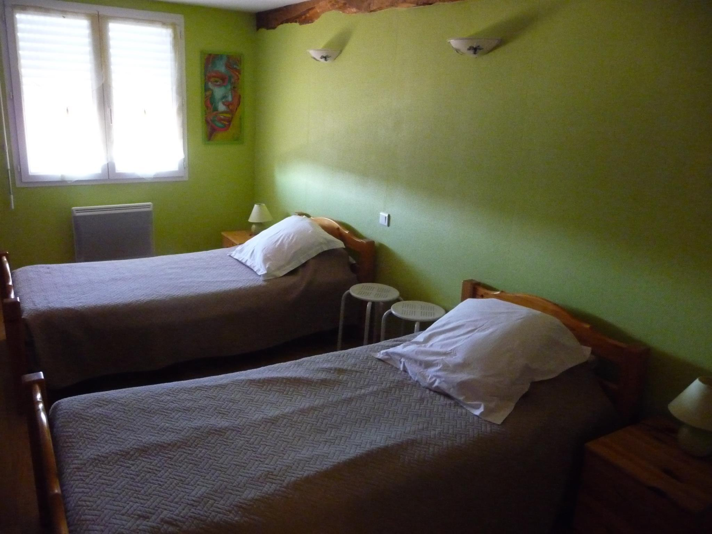 Gîte à l’étage, récemment aménagé à l’arrière de l’habitation du propriétaire, avec coin pelouse à coté de la piscine (salon de jardin, barbecue). Séjour/coin-cuisine, deux chambres (un lit double en 160 dans l’une, et deux lits simples en 80 jumelables), salle de bain, wc. Chauffage électrique. En commun avec les autres gîtes : piscine, spa, ping-pong, portique.