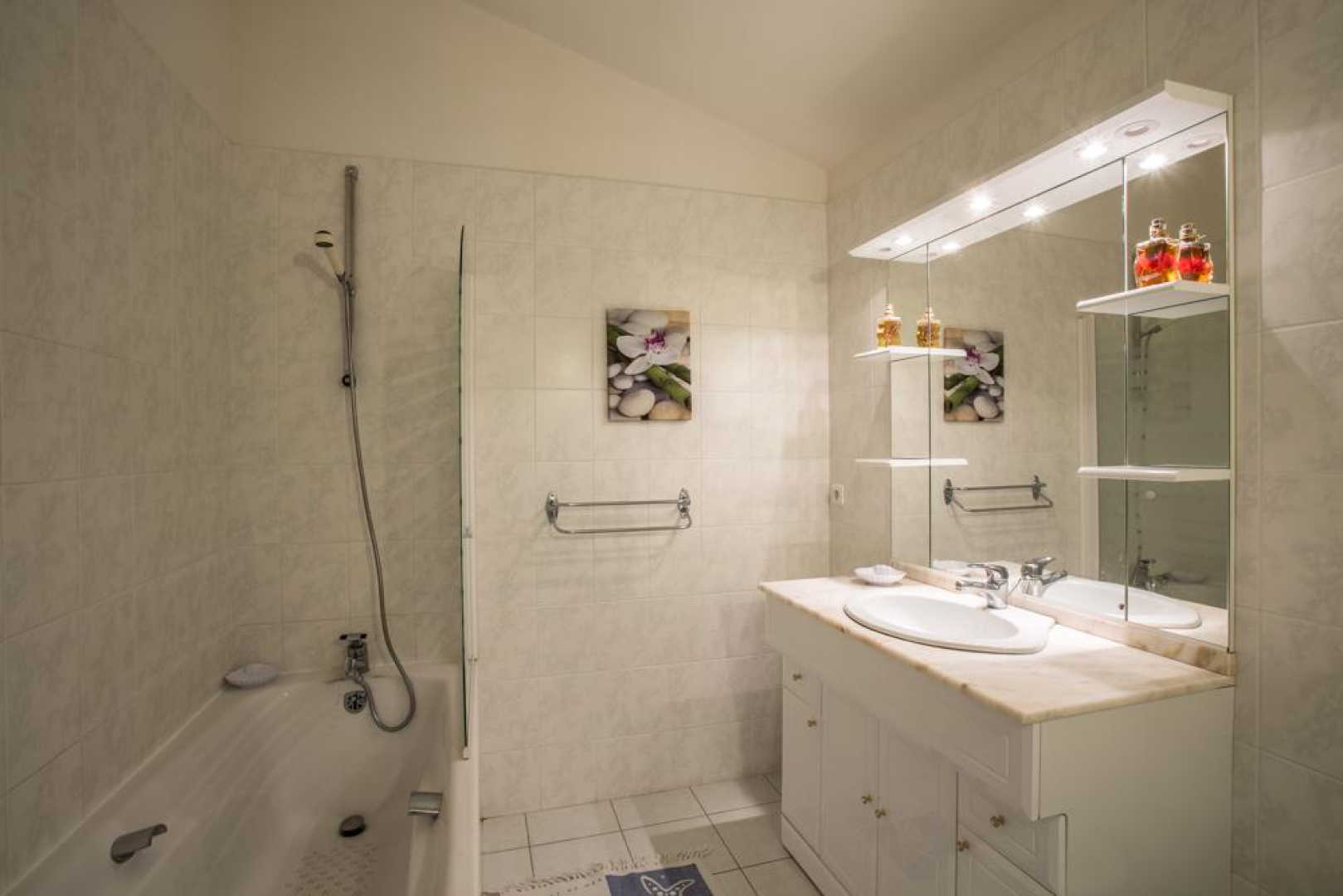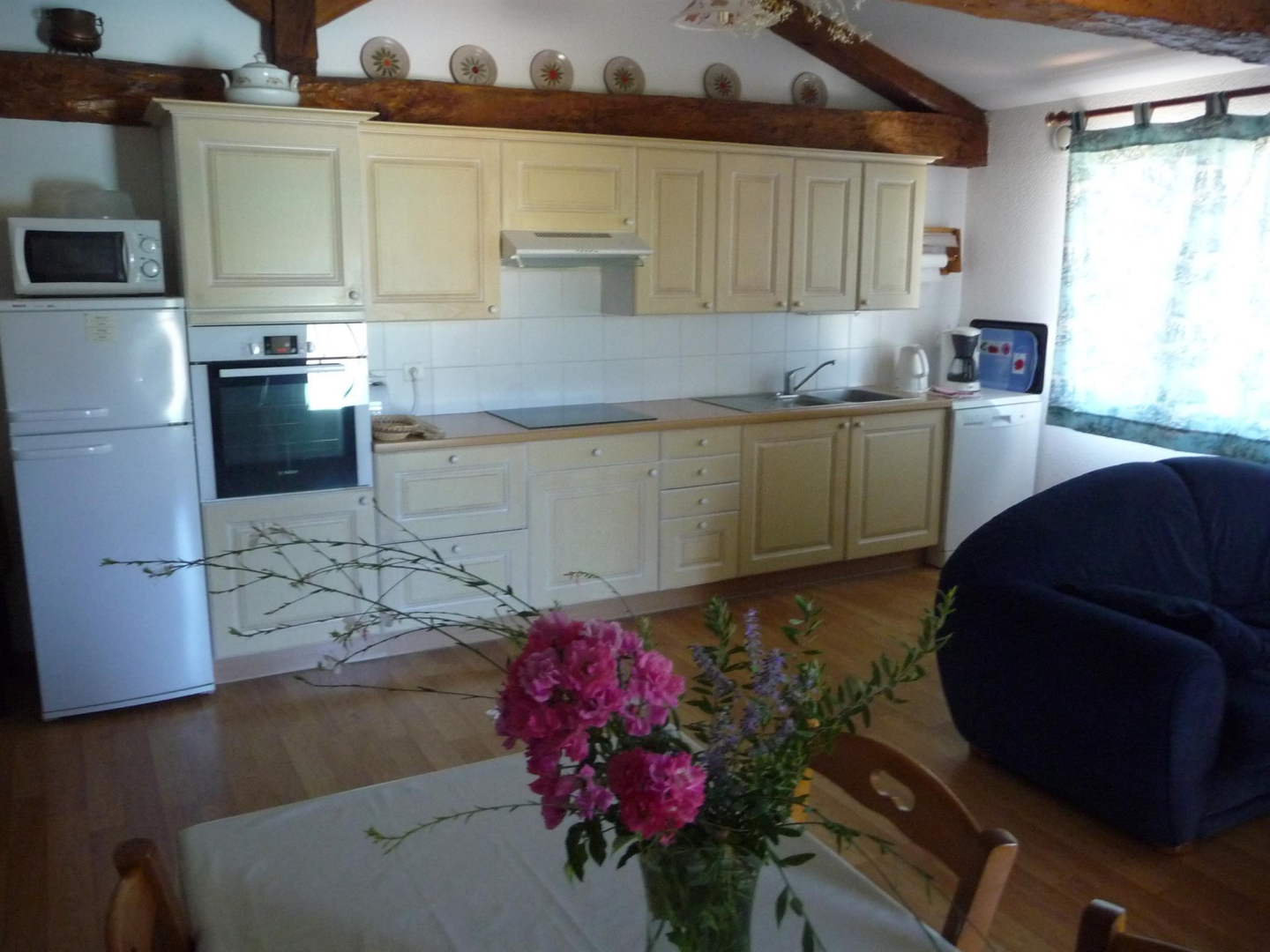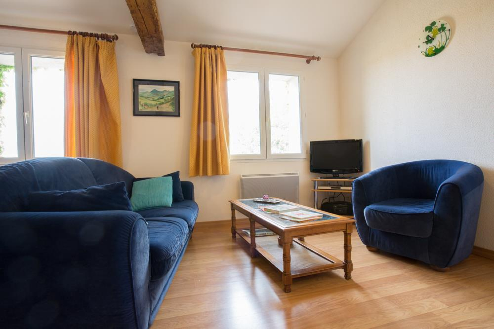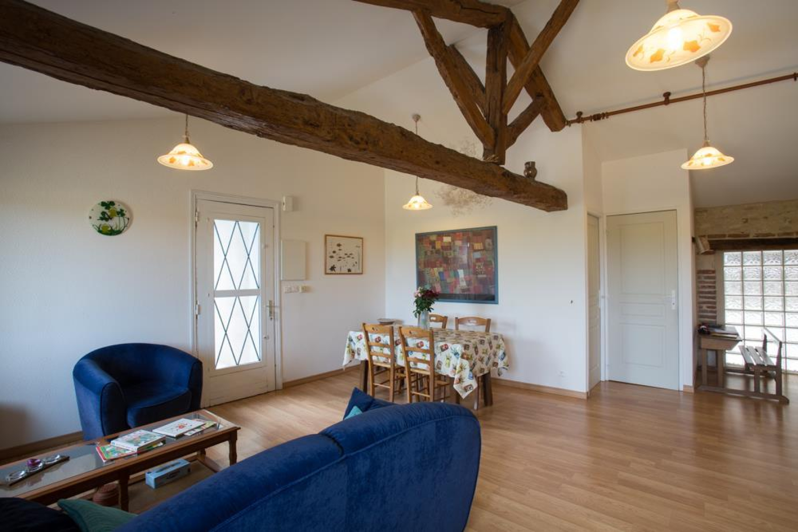 Gîte à l’étage, récemment aménagé à l’arrière de l’habitation du propriétaire, avec coin pelouse à coté de la piscine (salon de jardin, barbecue). Séjour/coin-cuisine, deux chambres (un lit double en 160 dans l’une, et deux lits simples en 80 jumelables), salle de bain, wc. Chauffage électrique. En commun avec les autres gîtes : piscine, spa, ping-pong, portique.