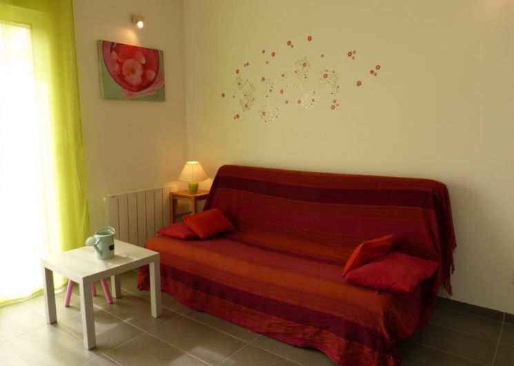 Au rez-de-chaussée : hall d’entrée, séjour donnant sur le jardinet privatif avec coin-salon, coin-repas et coin-cuisine. 1 chambre (1 lit 2 personnes en 140 cm) avec grande baie vitrée, salle d’eau et WC indépendant. A l’étage : mezzanine sur le séjour (2 lits 1 personne en 90cm). Chauffage électrique.