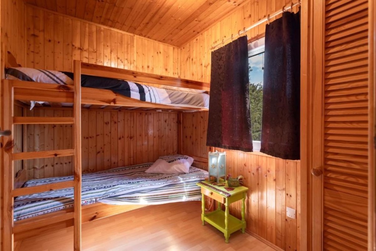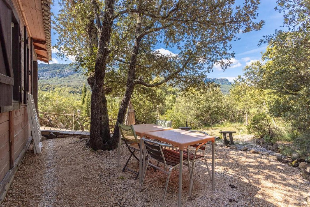 Situé dans un domaine intime composé de 5 chalets, le chalet vous accueille pour un séjour paisible en pleine nature. Chaque chalet dispose de sa propre terrasse privée avec mobilier de jardin, idéale pour les repas en plein air ou un moment de lecture. Vous profiterez également d’une piscine à partager, parfaite pour se rafraîchir après une journée de découverte. Laissez-vous envoûter par la vue directe sur l’impressionnant château cathare de Peyrepertuse, perché sur son éperon rocheux. Un SPA privé est situé sur la terrasse en option. La région regorge de trésors à explorer. Outre le majestueux château de Peyrepertuse accessible en quelques minutes, vous pourrez visiter celui de Quéribus, autre joyau de l’époque cathare. Les amateurs de nature apprécieront les sentiers de randonnée qui sillonnent les Corbières, les gorges de Galamus ou encore les baignades dans les rivières environnantes. Les villages typiques, les marchés locaux, les caves à vin, et les plages de la Méditerranée à moins d’une heure vous promettent un séjour riche, entre culture, paysages et détente. Au village: concerts d’été hebdomadaires, la P’tite Epicerie et sa Table (bistrot de pays) avec ses bons plats de produits locaux. Dans le chalet: – Un séjour avec cuisine ouverte (cafetière à filtre, mini-four, réfrigérateur, table à manger) – Chambre 1: un lit 140x190cm – Chambre 2: 2 lits superposés 90x190cm – Salle d’eau indépendante: douche, WC Le chalet est frais l’été et chaud l’hiver grâce à sa bonne isolation. Possibilité de prendre la climatisation en option (10€/jour). Bonne connexion 4g. Sur place profitez d’un accès à la rivière à l’ombre des saules pour avoir de la fraîcheur (idéal pour les baignades de nos amis à 4 pattes), du club house avec bibliothèque, jeux , télévision ,du ping-pong, du boulodrome , du trampoline. Petit-déjeuner facultatif (8€/pax), d’autres services sont proposés garde d’enfants, animaux. Borne de recharge électrique sur place (supplément de 0,40€ par kwh).