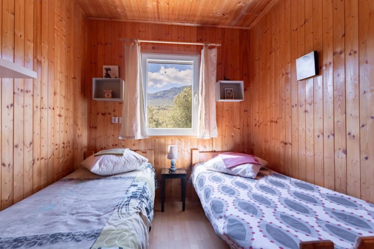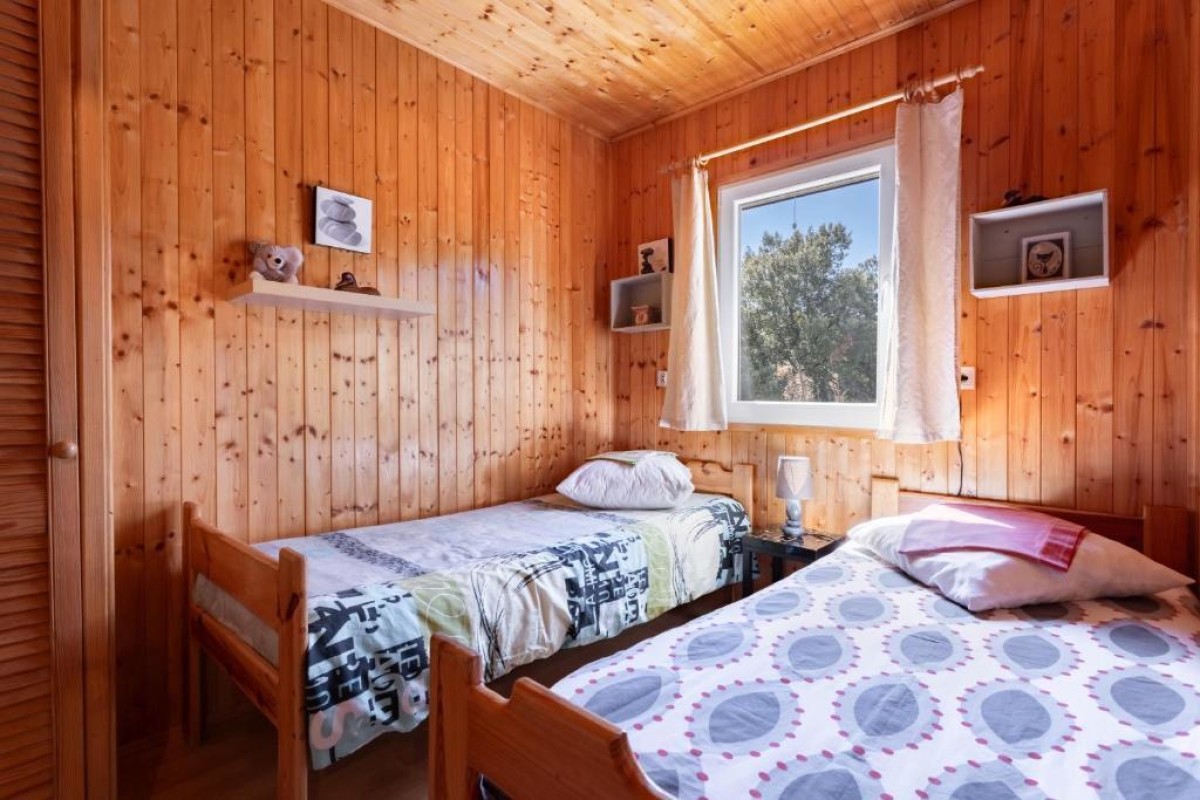 Situé dans un domaine intime composé de 5 chalets, le chalet vous accueille pour un séjour paisible en pleine nature. Chaque chalet dispose de sa propre terrasse privée aménagée avec mobilier de jardin, idéale pour les repas en plein air ou un moment de lecture. Vous profiterez également d’une piscine à partager, parfaite pour se rafraîchir après une journée de découverte. Laissez-vous envoûter par la vue directe sur l’impressionnant château cathare de Peyrepertuse, perché sur son éperon rocheux. La région regorge de trésors à explorer. Outre le majestueux château de Peyrepertuse accessible en quelques minutes, vous pourrez visiter celui de Quéribus tout proche, autre joyau de l’époque cathare. Les amateurs de nature apprécieront les sentiers de randonnée qui sillonnent les Corbières, les gorges de Galamus ou encore les baignades dans les rivières environnantes. Les villages typiques, les marchés locaux, les caves à vin, et même les plages de la Méditerranée à moins d’une heure vous promettent un séjour riche, entre culture, paysages et détente. Au village: concerts d’été hebdomadaires, la P’tite Epicerie et sa Table ( bistrot de pays ) avec ses bons plats de produits locaux. Le chalet est équipé avec: – Un séjour avec cuisine ouverte (cafetière à filtre, mini-four, réfrigérateur, table à manger). – Chambre 1: un lit 140x190cm. – Chambre 2: 2 lits 90x190cm. – Salle d’eau indépendante: douche, WC. Le chalet est frais l’été et chaud l’hiver grâce à sa bonne isolation. Possibilité de prendre la climatisation en option (10€/jour). Bonne connexion 4g. Sur place profitez d’un accès à la rivière à l’ombre des saules pour avoir de la fraîcheur ( idéal pour les baignades de nos amis à 4 pattes) , du club house avec bibliothèques, nombreux jeux , télévision ,du ping-pong, du boulodrome , du trampoline et plus encore. Petit-déjeuner facultatif (8€/pax), d’autres services sont proposés garde d’enfants, animaux.. Vous pouvez louer les autres chalets du domaine en groupe