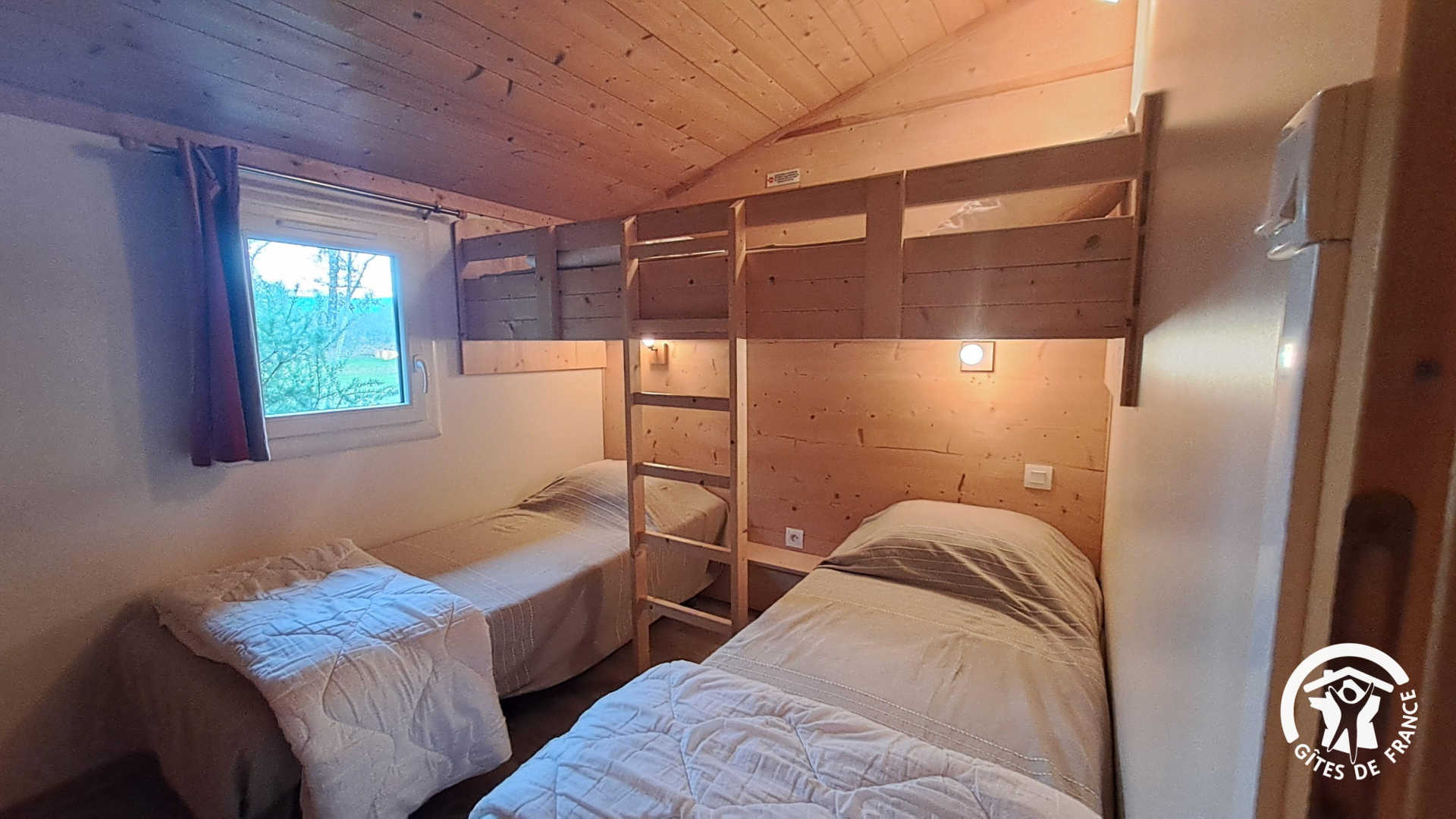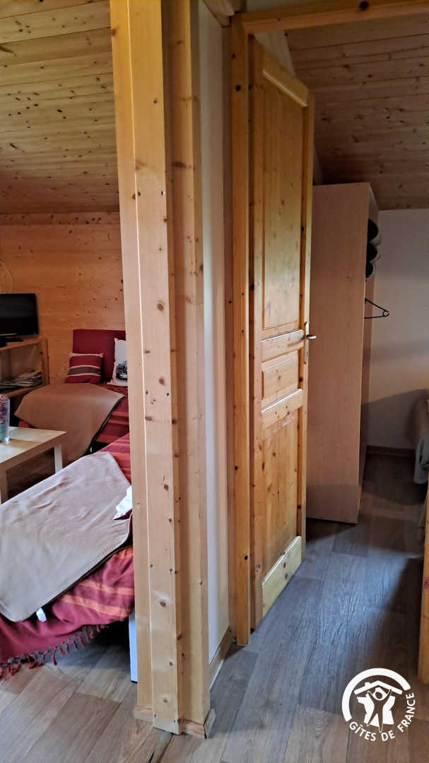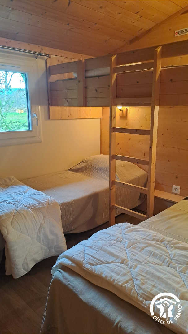 * Seconde chambre avec 3 lits simples en 80x190cm dont un lit en hauteur pour les enfants (échelle en bois)