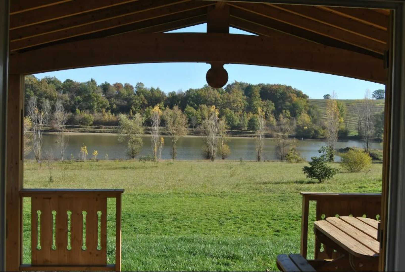 Extérieurs à « partager » avec l’autre chalet sur place ; mais vous disposez d’un vaste terrain tout autour du lac. Autant