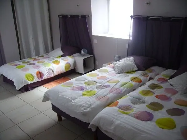 2 chambres, dont une avec lit 160 et une avec 2 lits 90 et un lit en 140. 2 salles de bains avec douche. Terrasse, cour privée et clôturée, barbecue.
