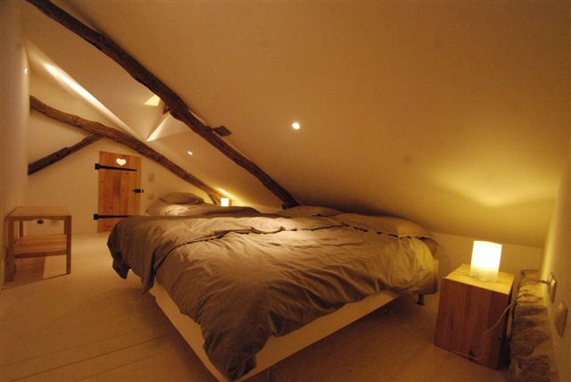 une chambre avec un lit double en 140 avec salle de bain,