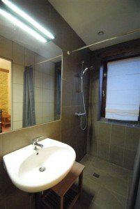 une chambre avec deux lits jumeaux en 90 avec salle de bain,