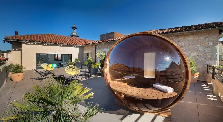Piscine en rooftop avec vue panoramique sur la bastide
