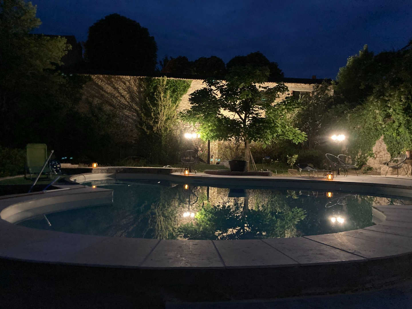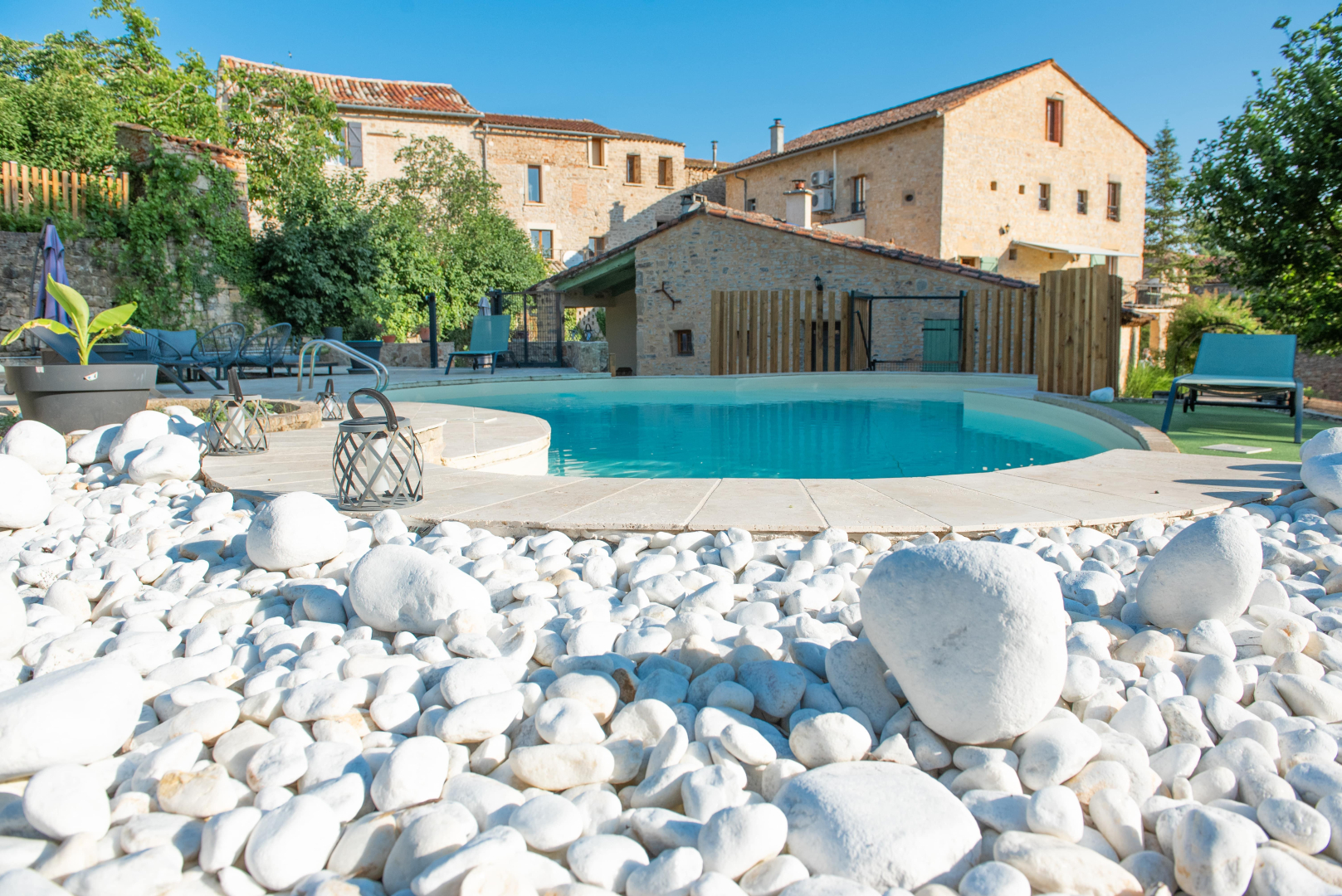 Piscine avec fond plat de 1,40m de profondeur et plage. Chauffée d’avril à octobre, sécurisée avec une barrière. Piscine accessible de 10h à 22h.