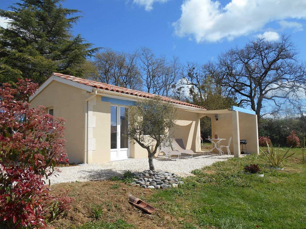 Cette maisonnette située sur un grand terrain clos, ombragé et fleuri, permet de recevoir 2 personnes.
