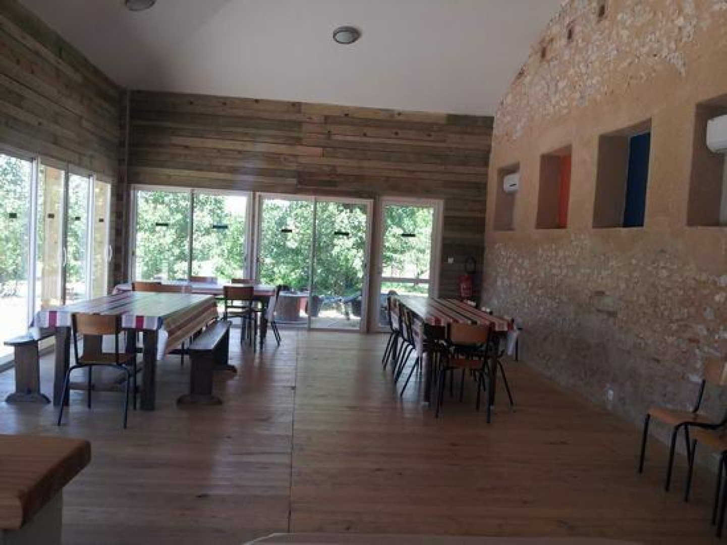 Réceptions et manifestations festives dans la salle à manger + en supplément mise à disposition de la grande salle toute équipée. Les tarifs sont modulables selon le nombre de personnes.