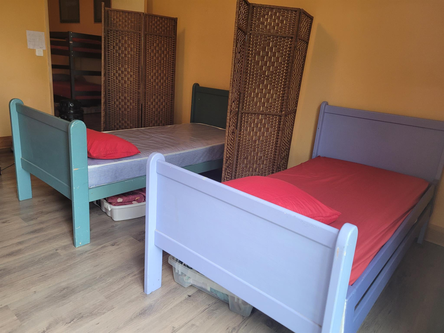 3 chambres de 6 places (lits 90x190cm dont certains superposés) + sanitaires + coin salon dans un autre bâtiment. Sanitaires : 3 douches et lavabos, 2 wc, lave-linge. Cuisine toute équipée (lave-vaisselle, réfrigérateur, congélateur, piano 5 feux, four, m-ondes).