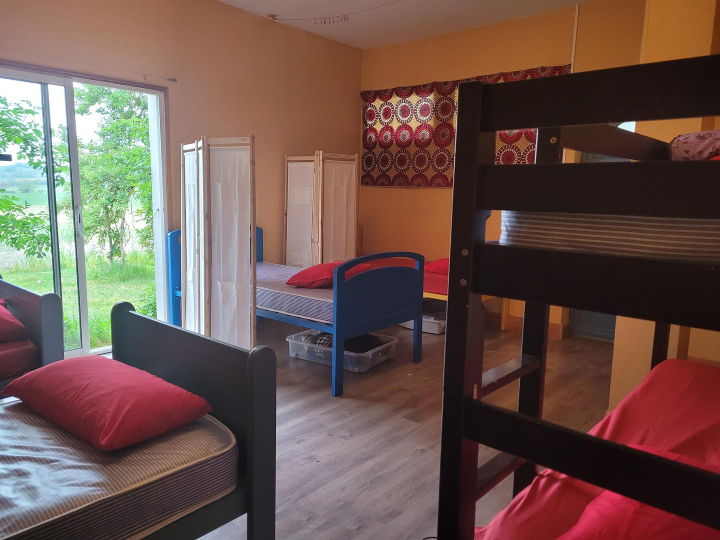 Gîte de groupe pour 18 personnes, aménagé dans d’anciens bâtiments agricoles, en deux parties.