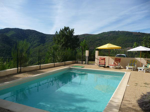 Gîte de Charme avec vue panoramique situé sur le versant du Mont Lozère, au cœur des Cévennes, à 3 km de Vialas, maison indépendante exposée plein sud, vue dominante panoramique dégagée, parking privé, jardin fleuri, terrasse et balcon, piscine privée, châtaigneraie en bordure. Le calme et la sérénité en sont la particularité. 3 chambres confortables, une salle d’eau et WC carrelée, cuisine américaine équipée. Un salon salle à manger avec de larges baies vitrées ouvertes sur la montagne, une décoration intimiste, le chauffage central pour la saison fraiche, le tout sous un toit de charpente en chataigner avec très bonne isolation du chaud et du froid.