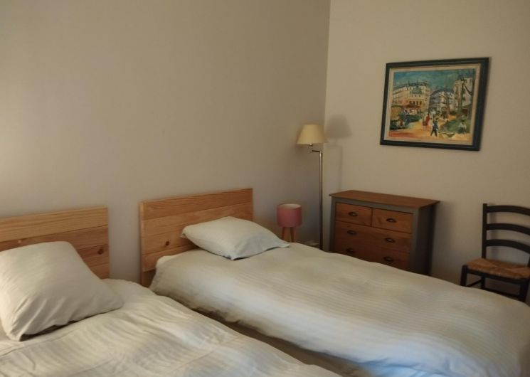Entrée dans le séjour avec un espace salon et un espace repas, cuisine intégrée, cellier, WC indépendants, salle d’eau avec WC, 3 chambres (1 lit pour 2 personnes en 160×200) (2 lits 1 personne en 90x200cm) (2 lits 1 personne en 90x200cm jumelables avec sa salle d’eau privative). Accès Internet.