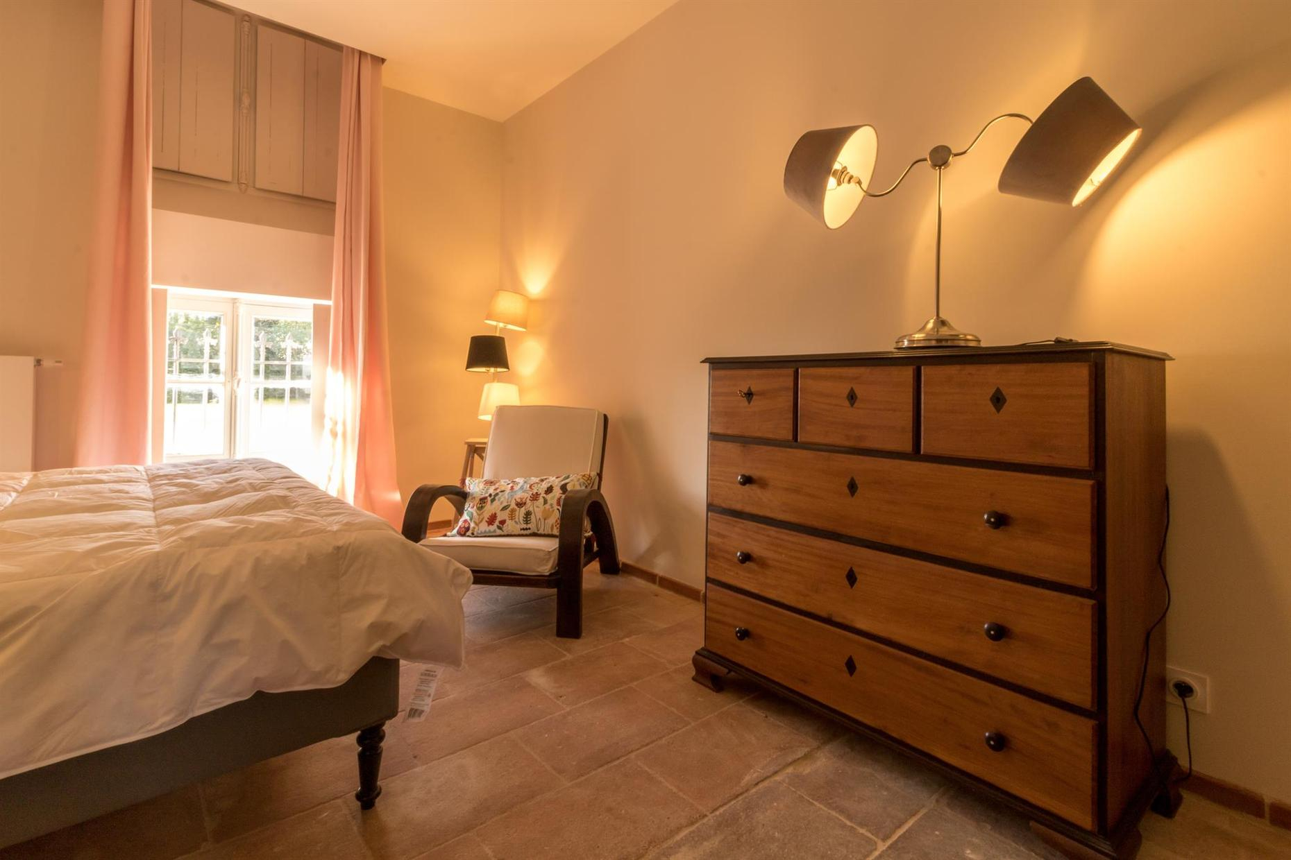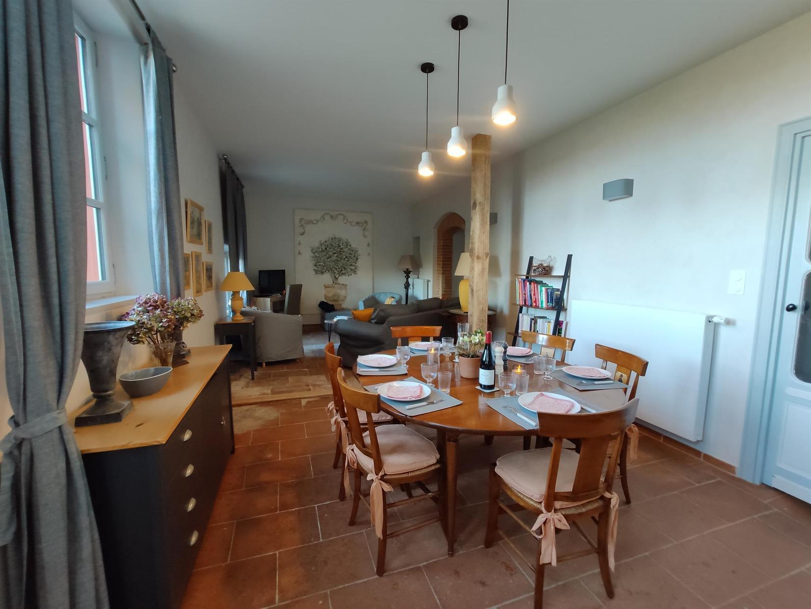 Dans ce cadre exceptionnel, Anne a su donner une seconde vie à ce lieu où accueil rime avec modernité et respect des matériaux traditionnels. Vous pourrez profiter de la piscine extérieure (7x14m) ou pour les plus sportifs faire un tennis sur le court dans la propriété, ces équipements de loisirs sont en commun avec les propriétaires qui occupent une partie de la maison.