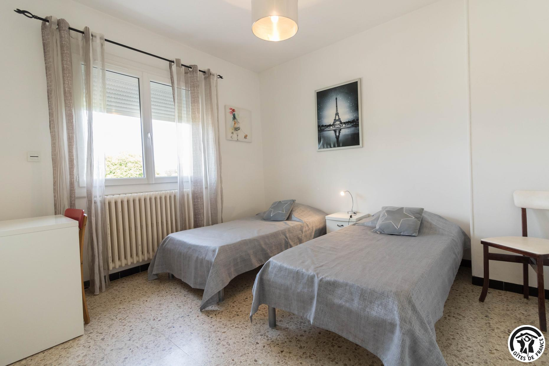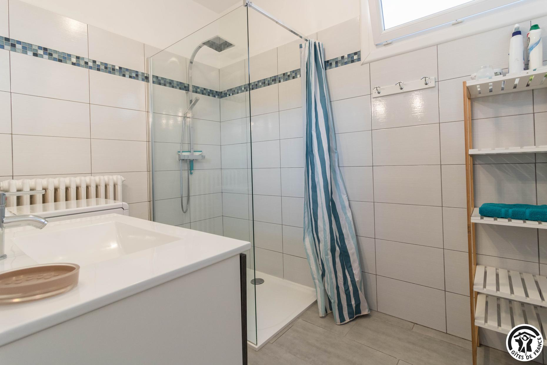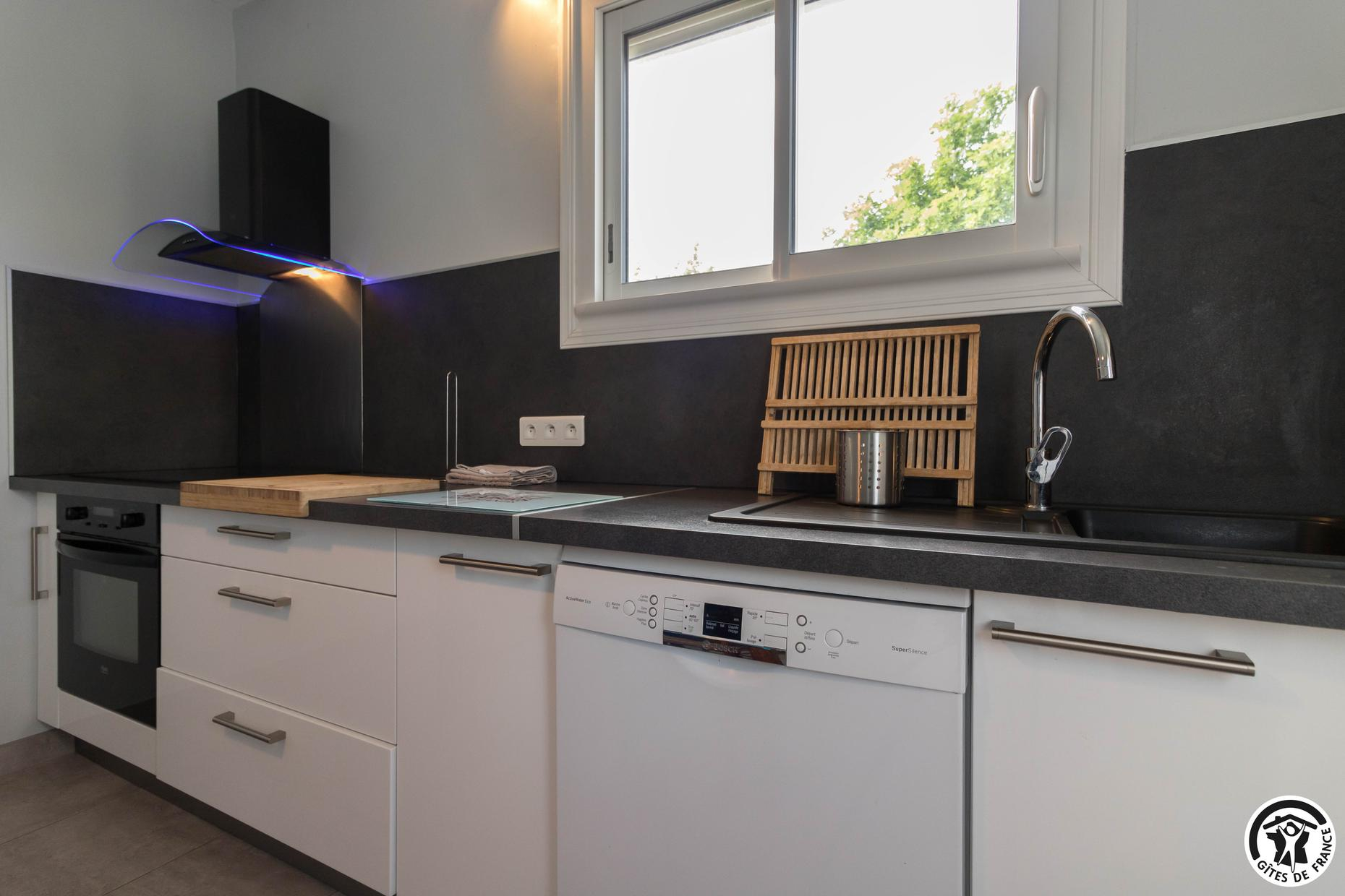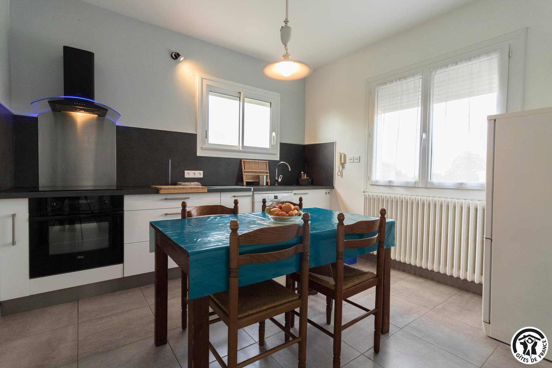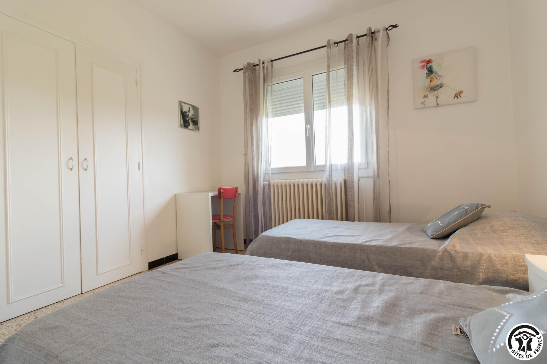 Gîte à l’étage, accessible par un escalier extérieur (rez-de-chaussée non aménagé) : entrée, cuisine indépendante (4 plaques à induction, four, micro-ondes, réfrigérateur-congélateur, bouilloire, cafetière et grille-pain), séjour avec canapé convertible pour 2 personnes en 160cm, 2 chambres (2 lits pour 1 personne en 90cm) (1 lit pour 2 personnes en 140cm), salle d’eau, WC indépendant. Chauffage central, climatisation. Accès Internet wifi.