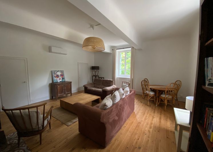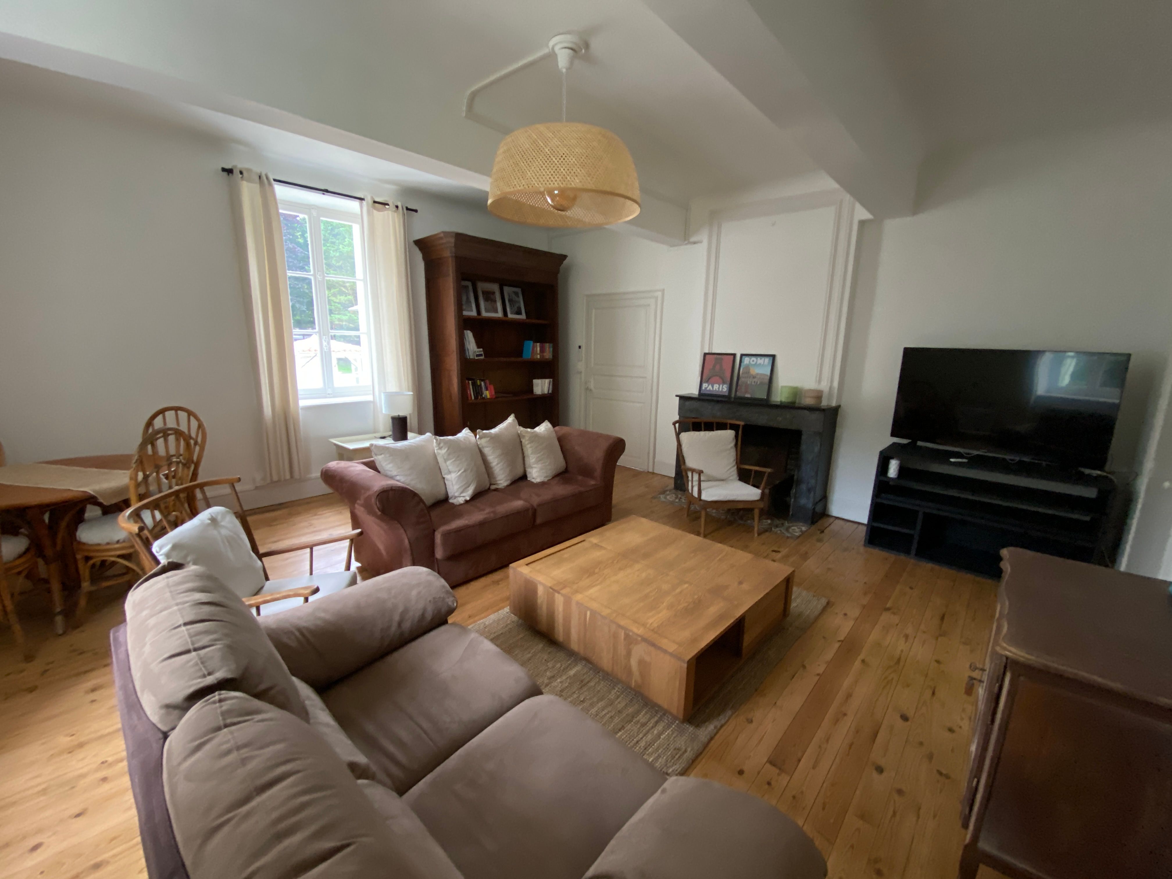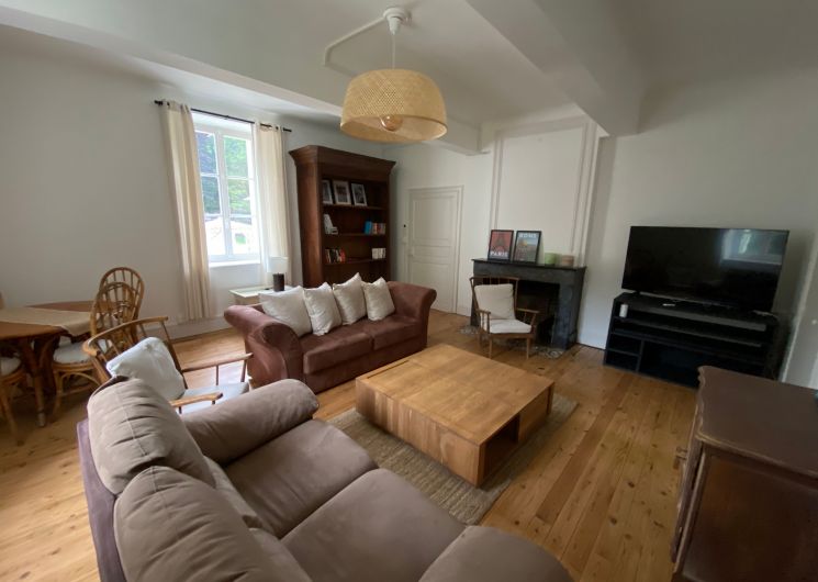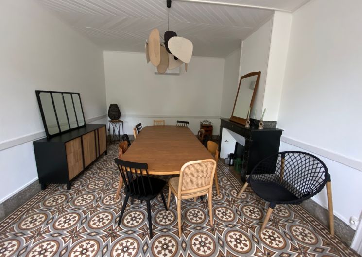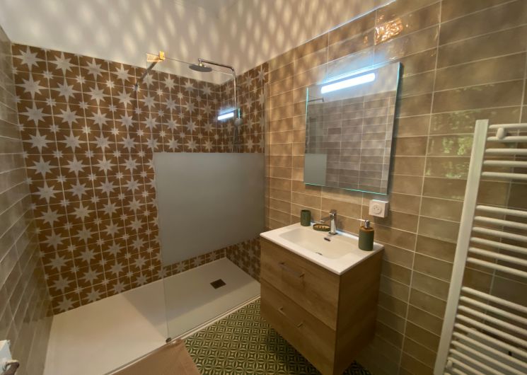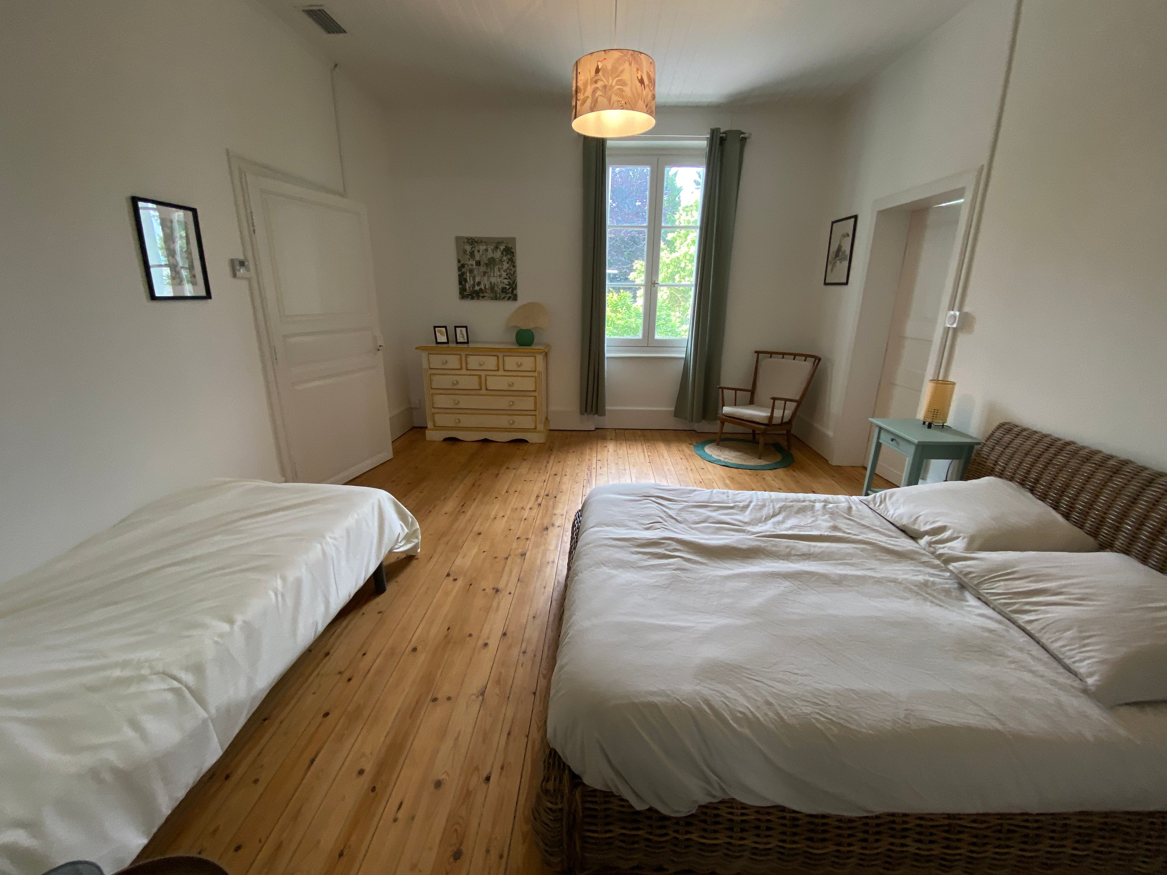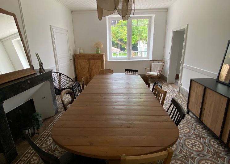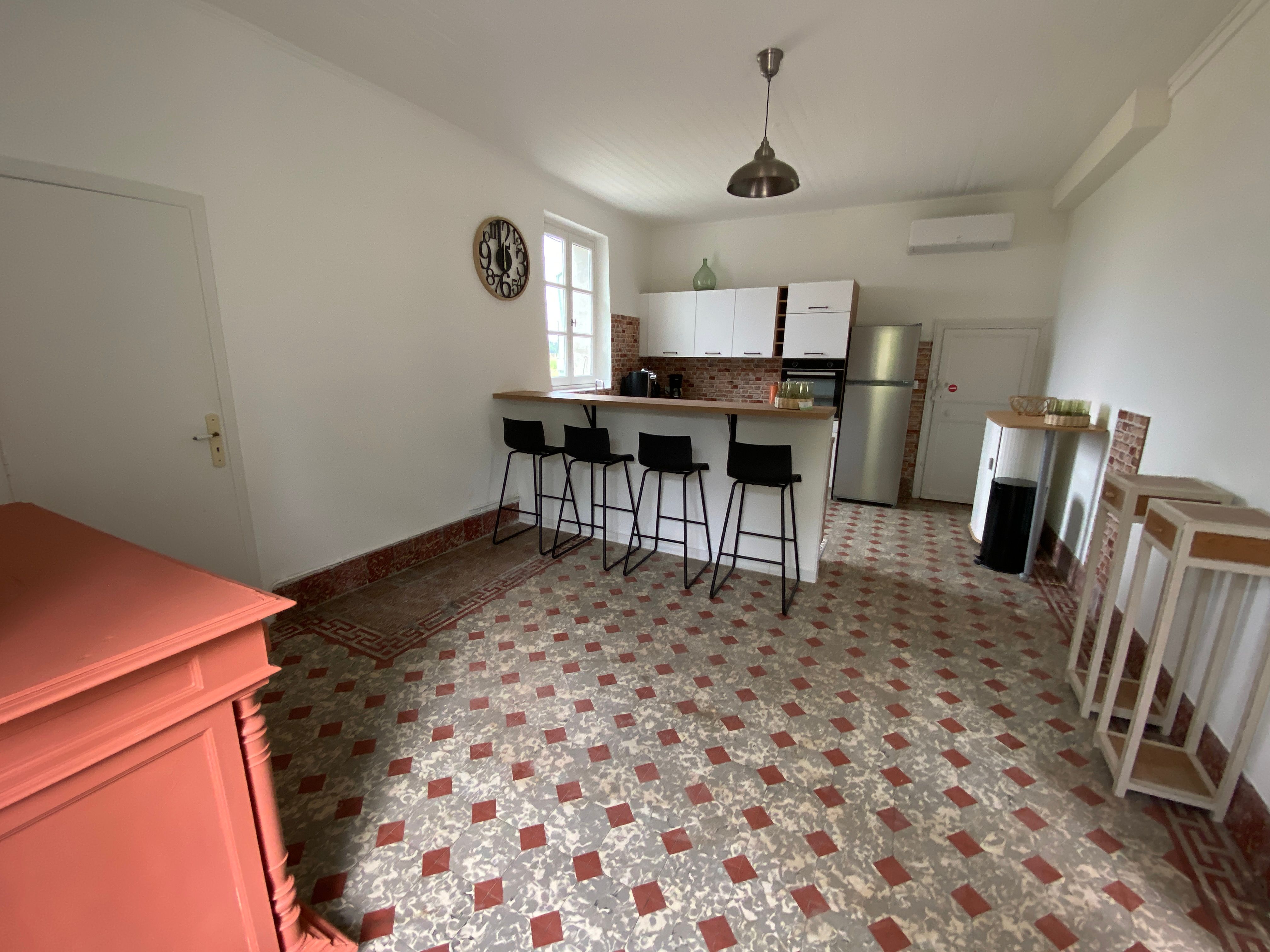 Après quelques marches, vous découvrez un grand couloir qui dessert une cuisine (éléments intégrés avec plaque, four, réfrigérateur, congélateur, lave-vaisselle), bar, une salle à manger. De l’autre côté se trouve le salon avec canapés fauteuils, TV. Par l’escalier en bois, l’étage propose deux chambres se partageant une salle d’eau avec wc et un sas de dégagement avec bureau. De l’autre côté du palier, une chambre avec 1 lit 140 et 1 lit 0,90 salle d’eau avec wc privatifs et une chambre avec 4 lits 0,90 salle d’eau et wc privatifs. Un wc au rez-de-chaussée avec lave-linge. Climatisation dans tout le gîte. A l’extérieur une grande piscine privative au gîte (10×5), jouxtant une terrasse totalement couverte avec salon de jardin chaises barbecue. Grand terrain de 3000 m2 autour du gîte clôturé.