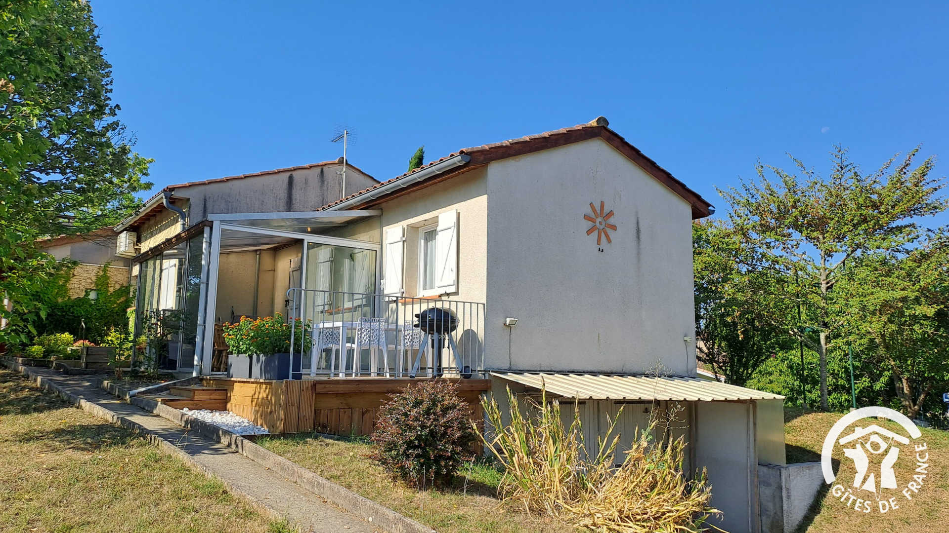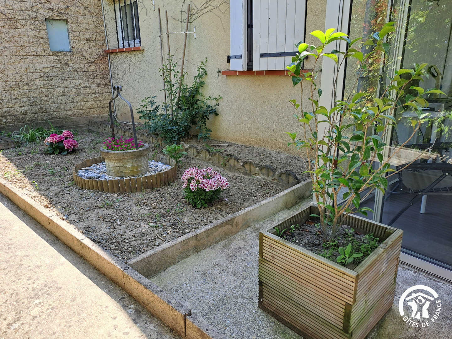 Le gîte Les jardins de Vénès se situe un peu à l’écart du village, dans le quartier tranquille des jardins potagers. Mitoyen à la maison des propriétaires mais bénéficiant d’un accès indépendant, il constitue un hébergement confortable pensé pour un séjour à deux dans une atmosphère paisible.