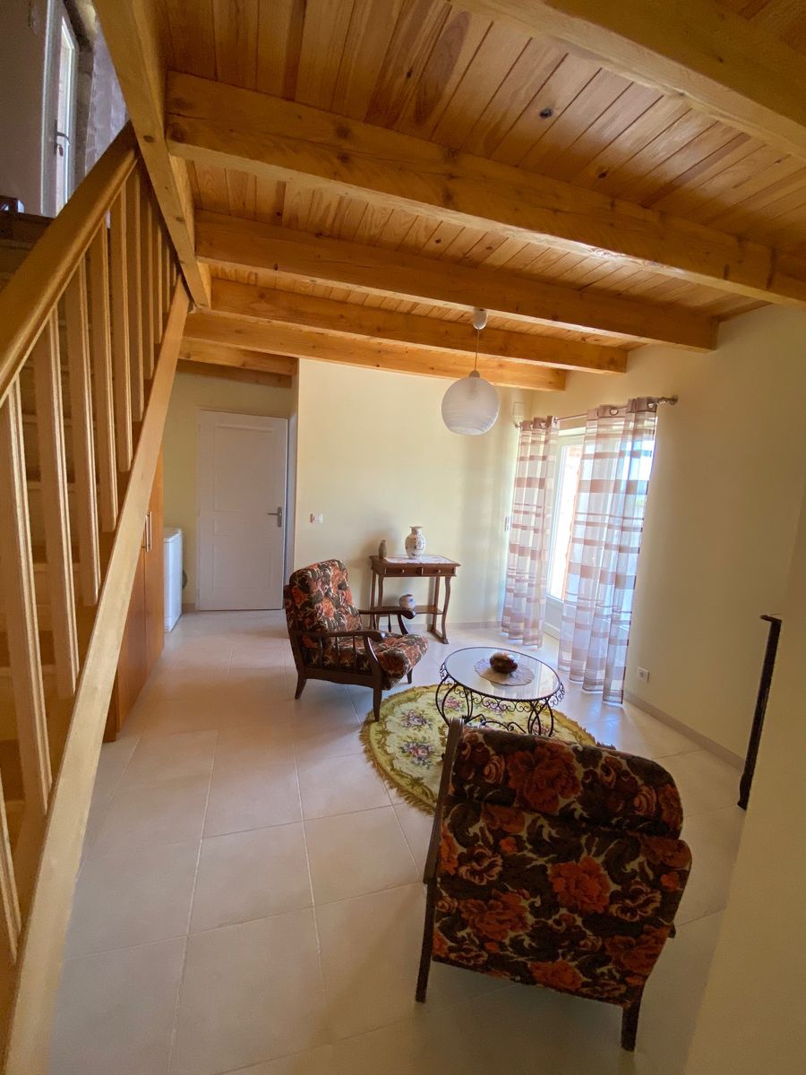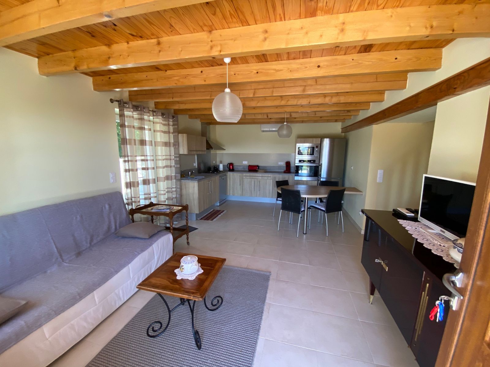 On entre dans une cuisine tout équipée (éléments intégrés, micro ondes , LV, espace salon avec canapé clic-clac, TV, lecteur DVD), un salon lecture (2 fauteuils TV), une salle d’eau, wc indépendants. A l’étage, 1 chambre avec chacune 1 lit 140 et 1 chambre (2 lits 0,80). Terrasse avec salon de jardin et barbecue. Boulodrome ombragé commun. Location draps 10 €/ paire (obligatoire professionnels), option Ménage 100€ (obligatoire professionnels). Chauffage compris. gîte climatisé.