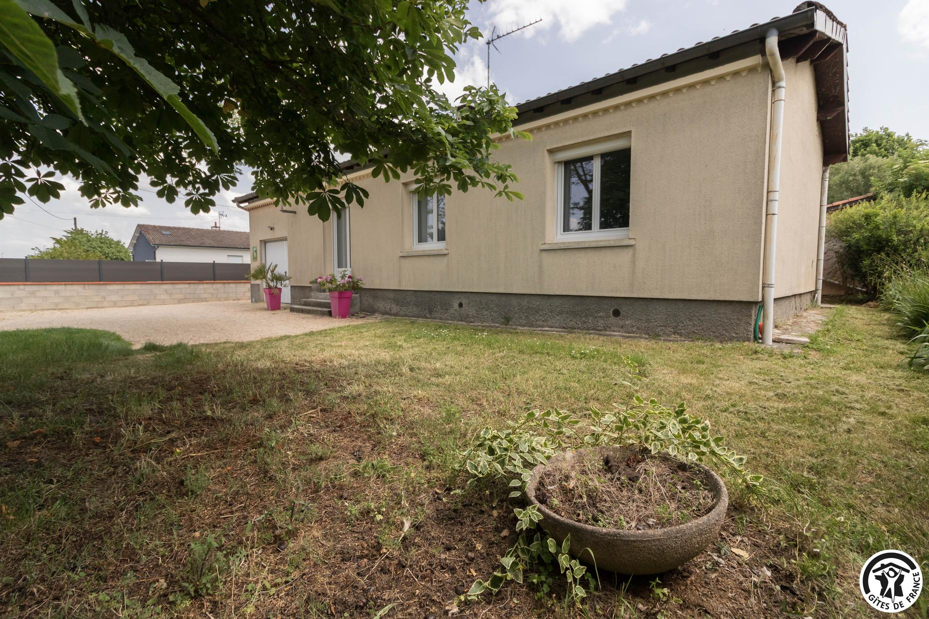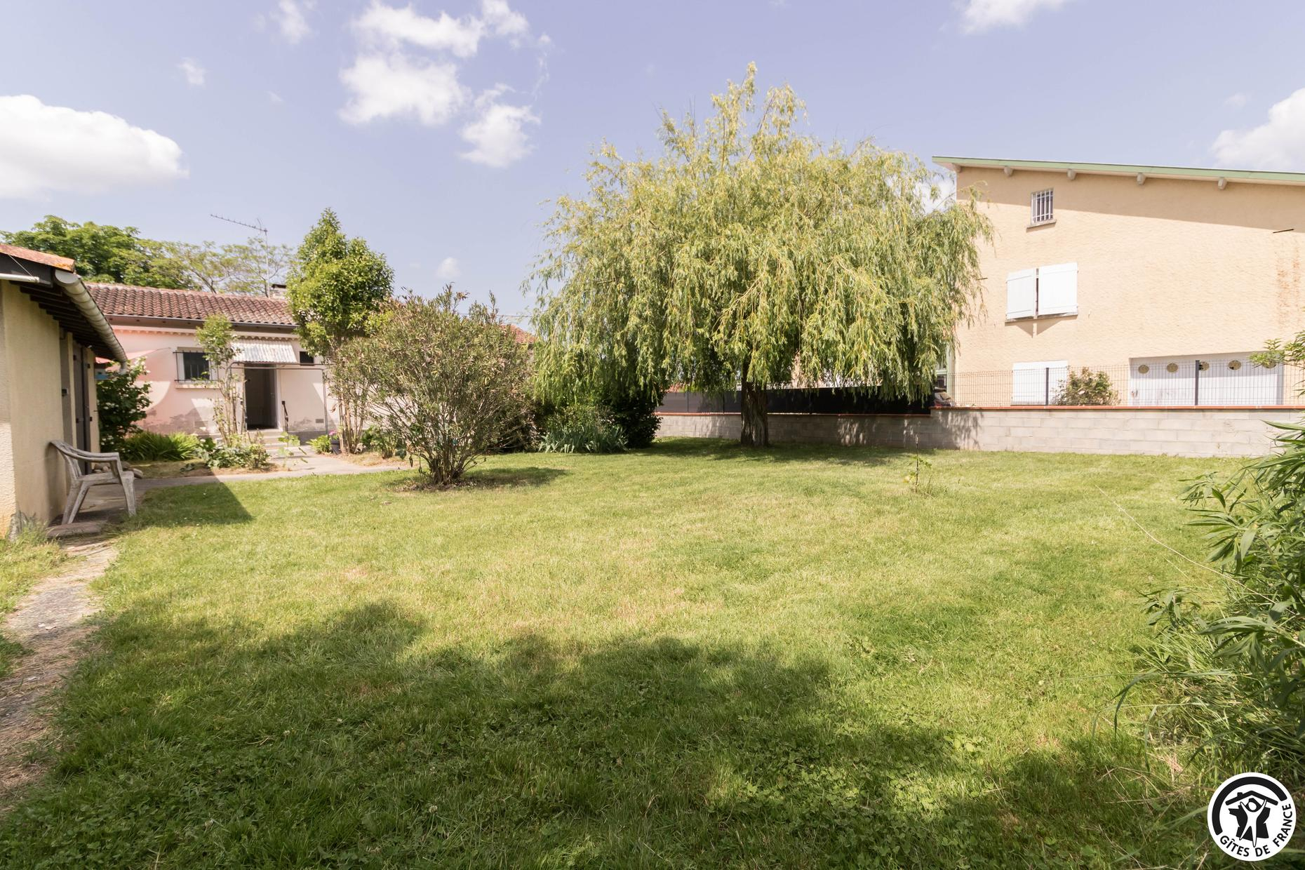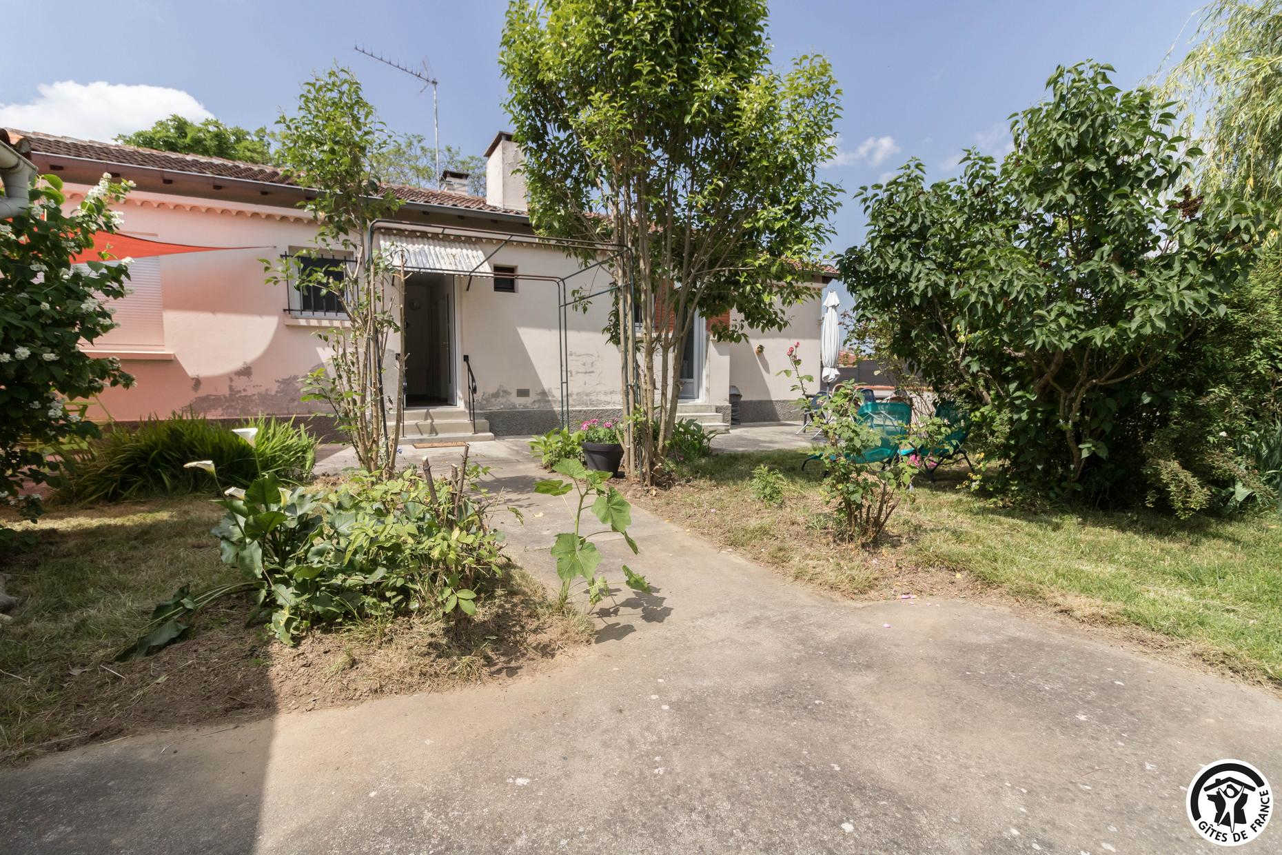 Gîte sans mitoyenneté pour 4 personnes à Aussonne, à 20km au nord du centre historique de Toulouse. 2 chambres – 3 lits. Jardin en commun clos. Animaux admis. Internet.
