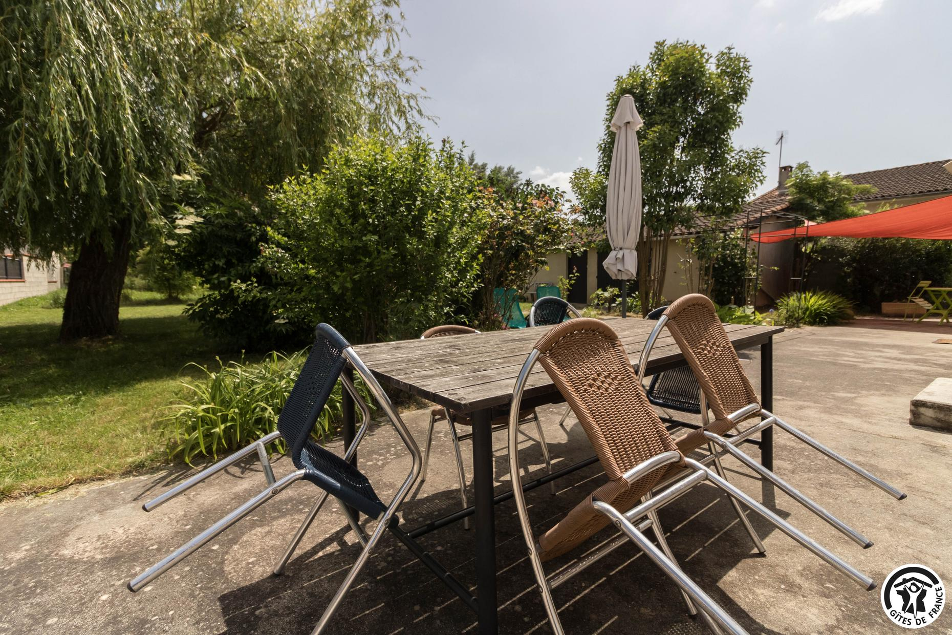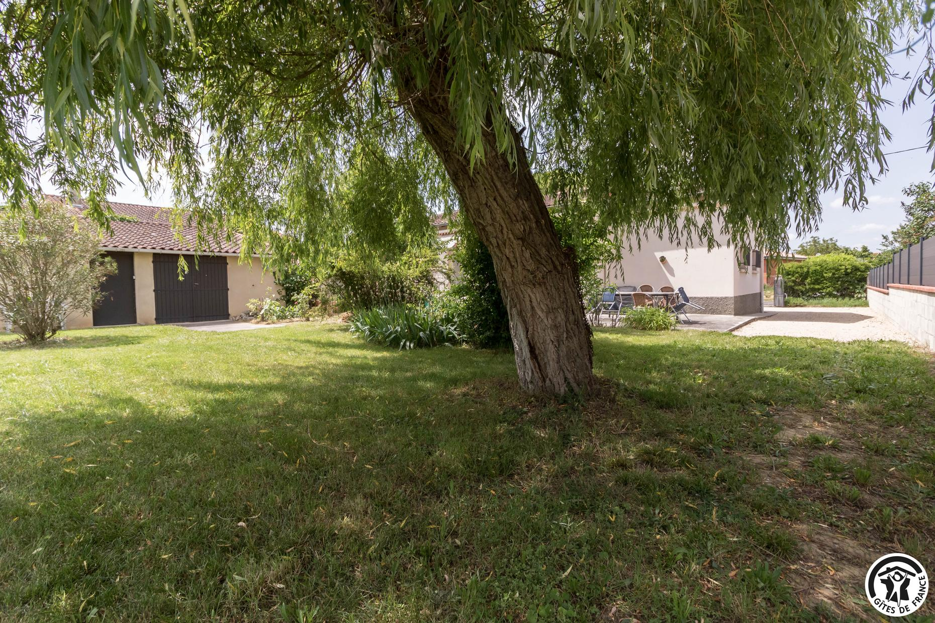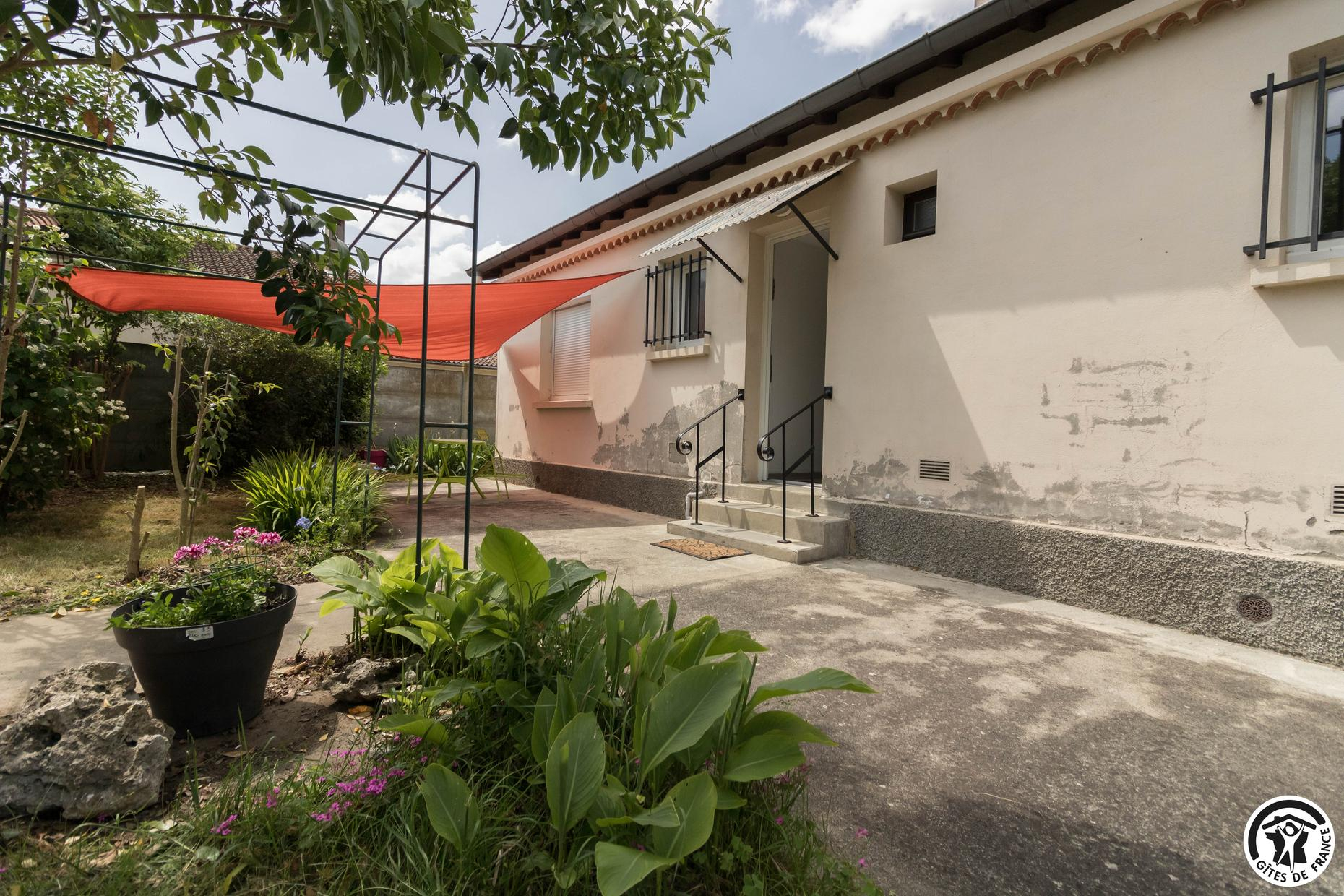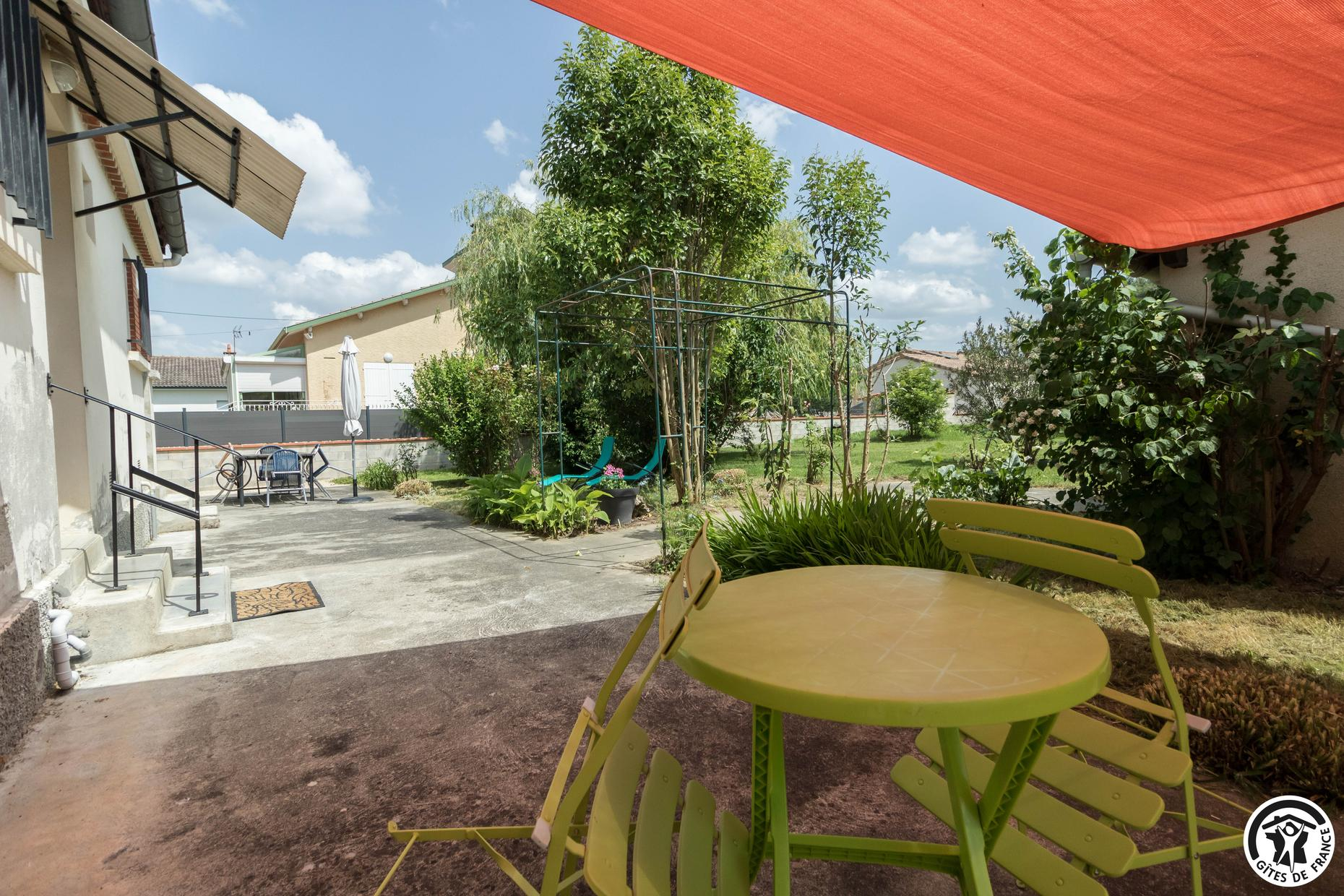 Gîte sans mitoyenneté pour 4 personnes à Aussonne, à 20km au nord du centre historique de Toulouse. 2 chambres – 3 lits. Jardin en commun clos. Animaux admis. Internet.