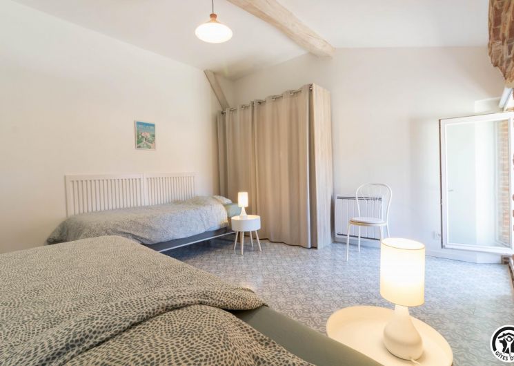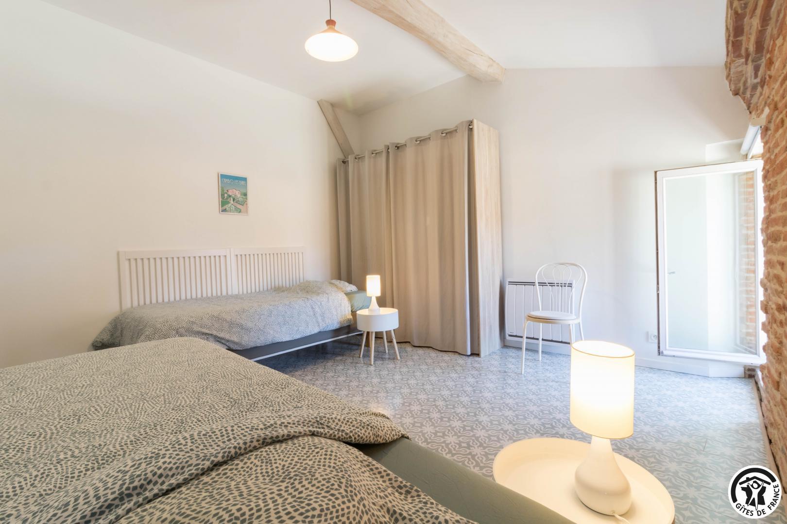 – A l’étage se trouvent 2 chambres (2 lits simples en 90*200cm, jumelables en 1 lit double de 180*200cm)(1 lit double en 160*200cm) et une salle d’eau/WC.