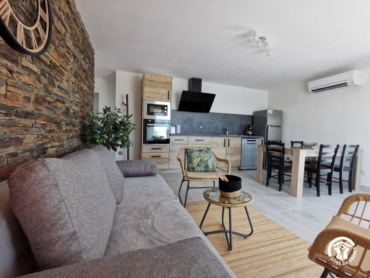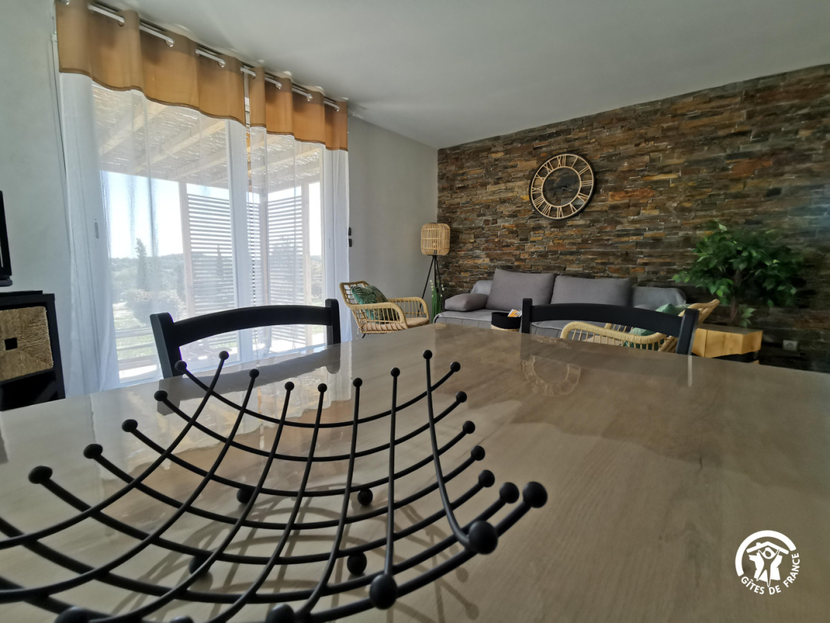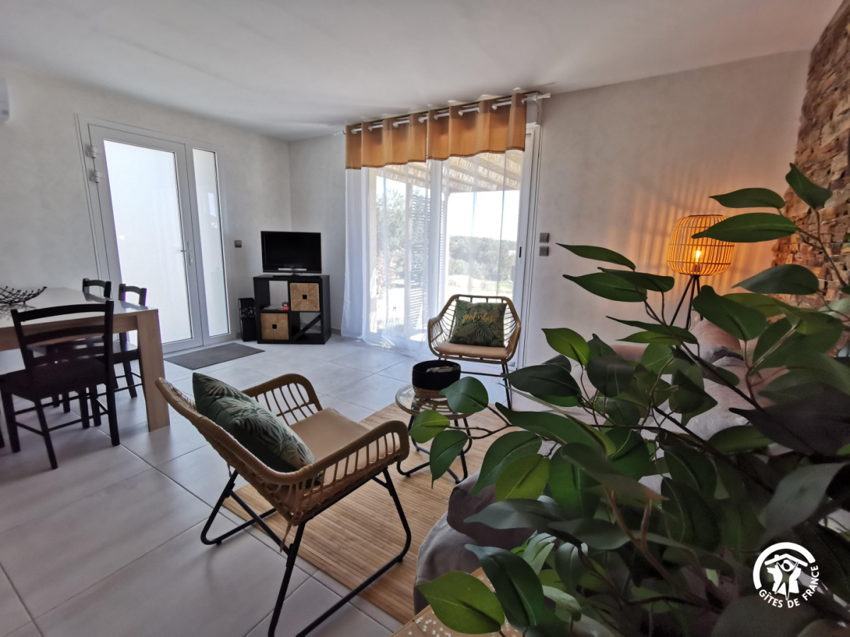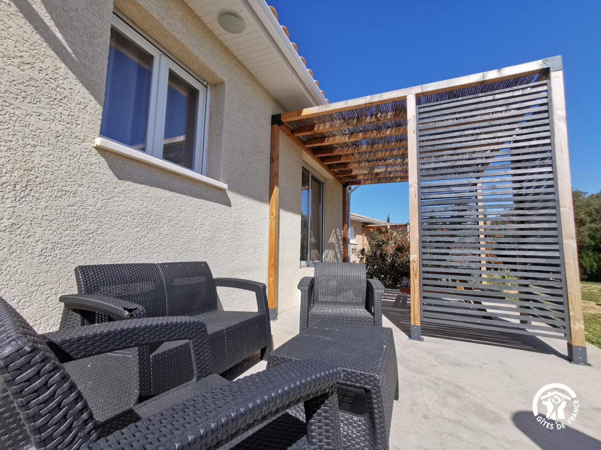 Ressourcement garanti ! Au fond d’une allée, au calme et sans vis-à-vis, retrouvez ce gîte indépendant comprenant : sa terrasse privative avec salon de jardin, un barbecue et sa place de stationnement privative sous abri attenant. L’intérieur est composé d’une pièce de vie lumineuse avec cuisine toute équipée ouverte sur le séjour, une chambre avec un lit double (140×190), une chambre avec deux lits simples (80X190), une buanderie avec lave-linge ainsi qu’une salle de bain et WC indépendant. Un vaste jardin commun est à votre disposition avec piscine extérieure (non chauffée) commune aux 3 gîtes de la propriété. Le tarif comprend le ménage de fin de séjour, les draps ainsi que le linge de toilette. Il y a une caméra à l’exterieur (allée principale). Une borne de recharge pour véhicule électrique est disponible dans le village. ATTRAITS TOURISTIQUES : Minerve (fief cathare), les Gorges de la Cesse, Narbonne, Carcassonne, le Canal du Midi classé au Patrimoine Mondial de l’Unesco, les vignobles du Minervois (muscat de St Jean de Minervois), l’abbaye de Fontfroide, le lac de Jouarres.