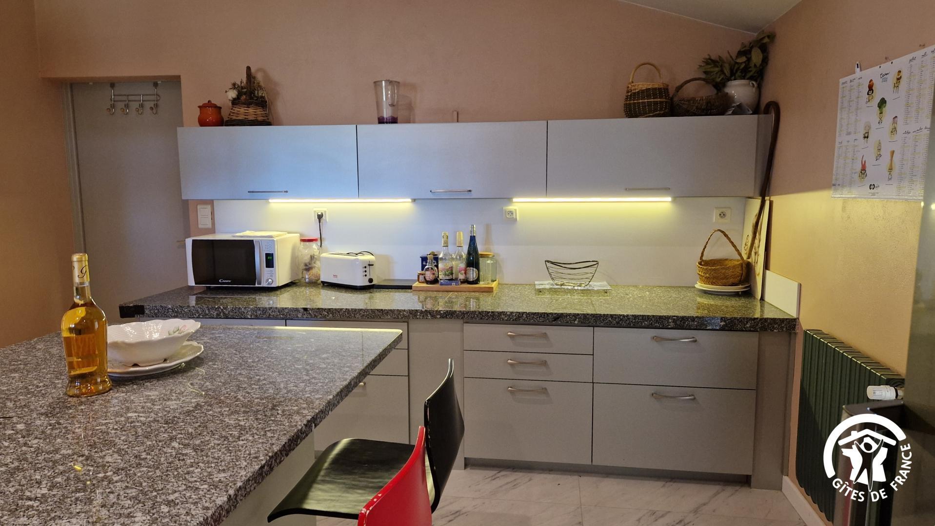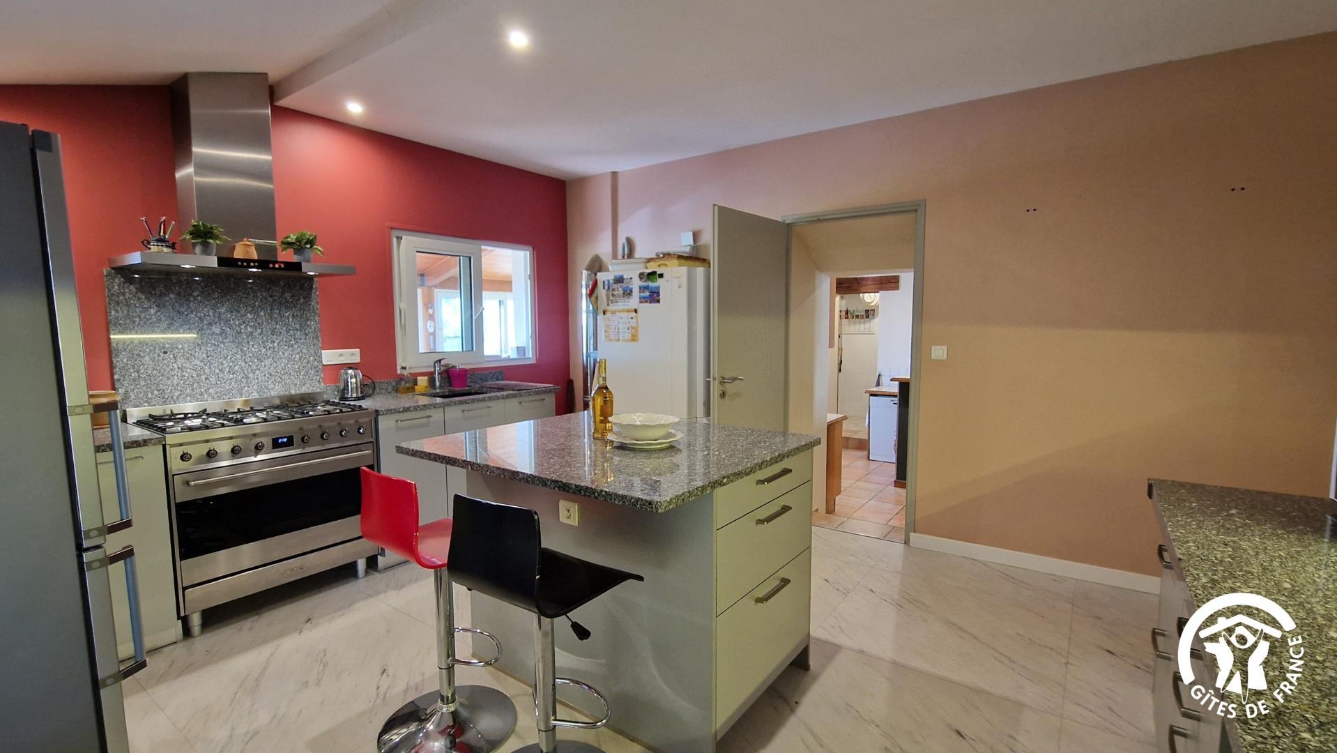 – 2 cuisines : piano de cuisson, micro-ondes, réfrigérateur, cafetière à filtre, grille-pain, bouilloire, lave-vaisselle…