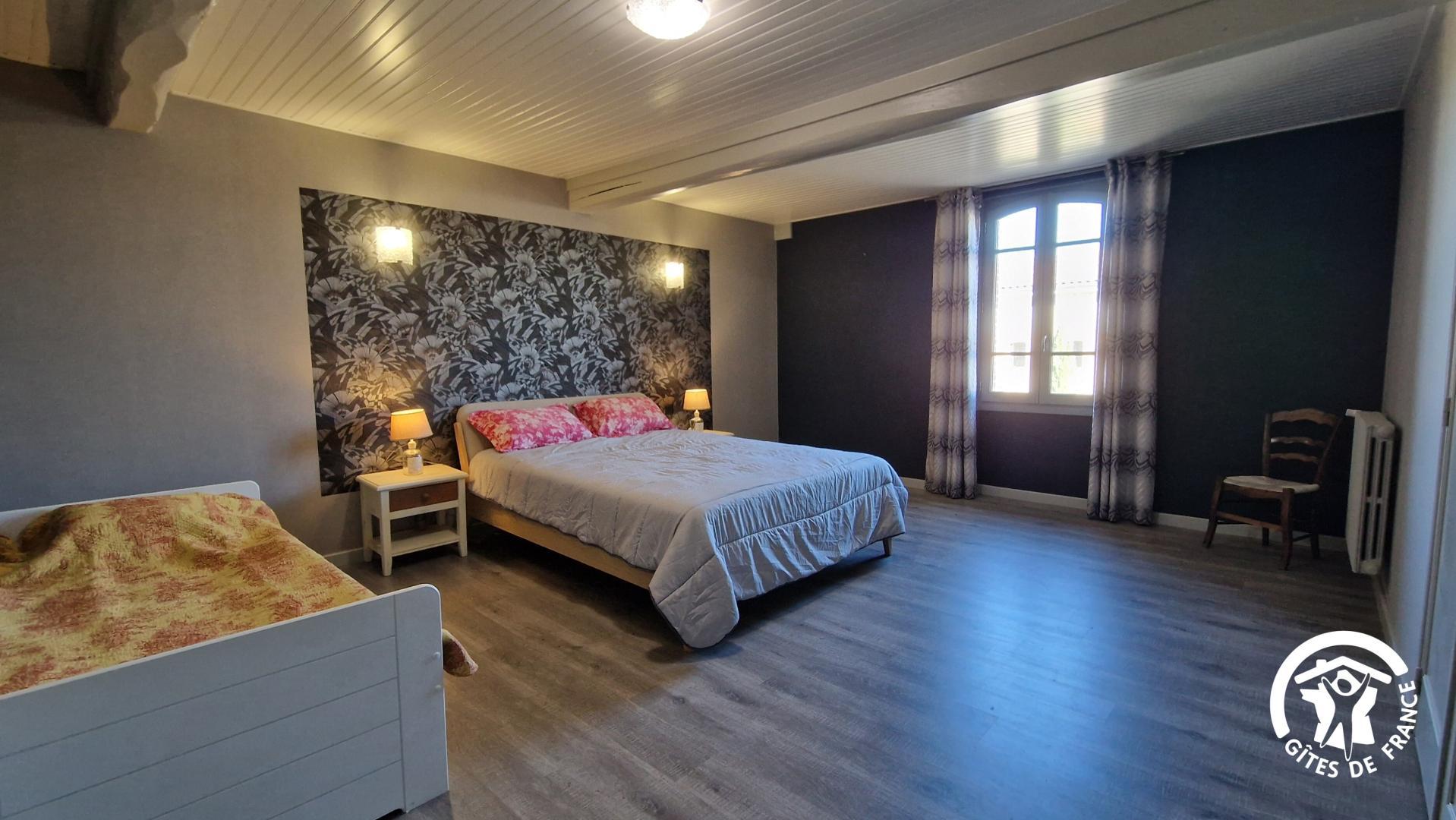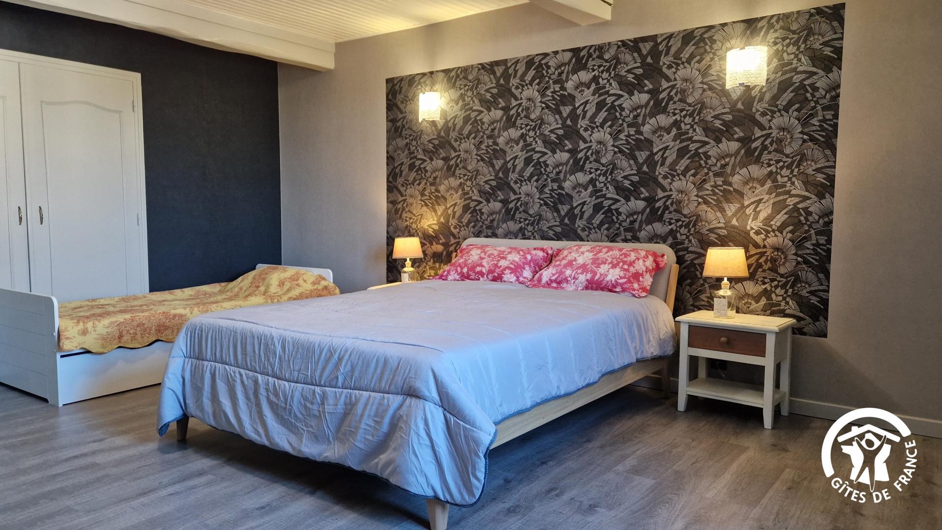 – une grande chambre avec un lit gigogne pour 2 couchages individuels, et lit double 160cm