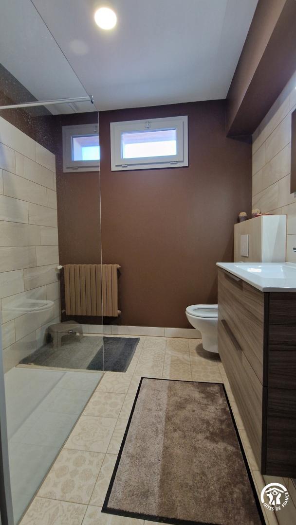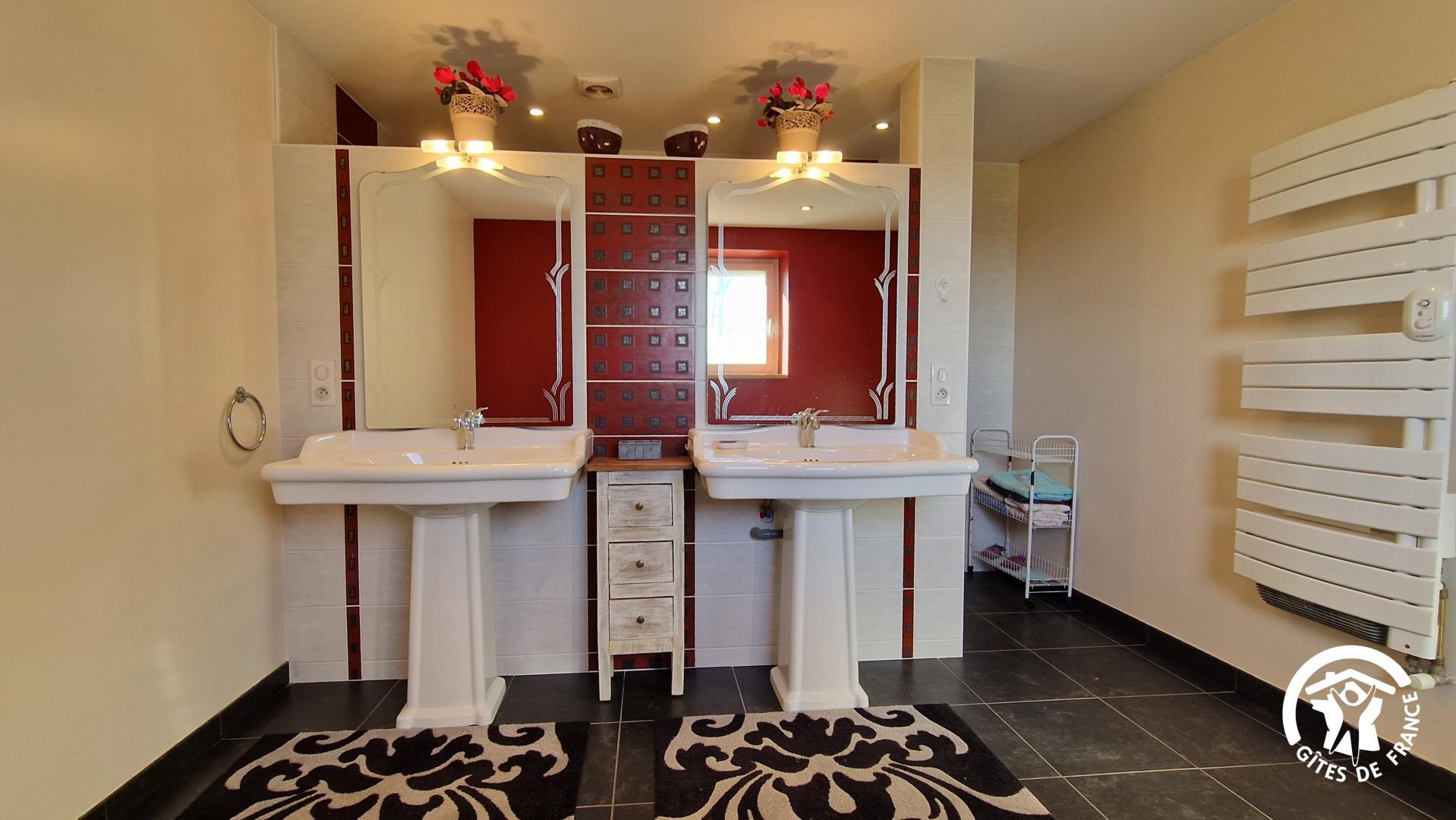 – une seconde salle d’eau, plus grande avec 2 vasques et une douche. Wc indépendant dans le couloir