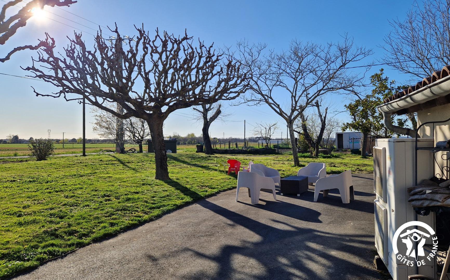 Grand jardin devant la véranda, les espaces ne manquent pas. Devant la maison : une cour bétonnée qui fera le plaisir des plus petits pour faire de la trottinette ou du vélo, parking pour les voitures.