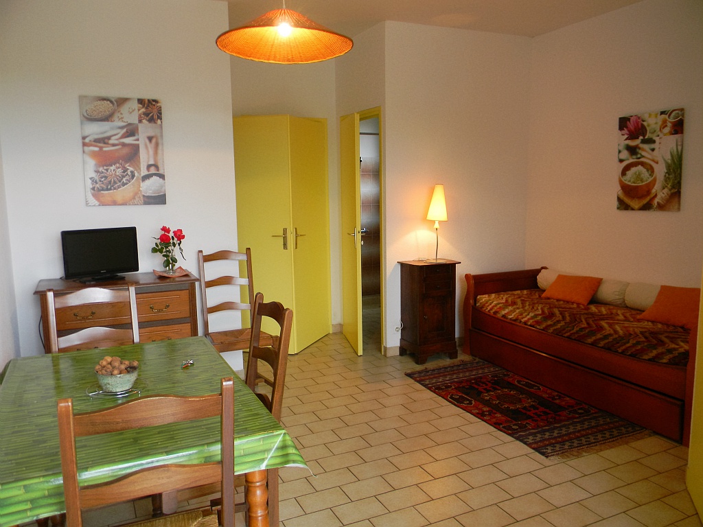 Chambre lit 140, salle d’eau, wc indépendant, cuisine équipée, séjour avec canapé/lit, wifi.