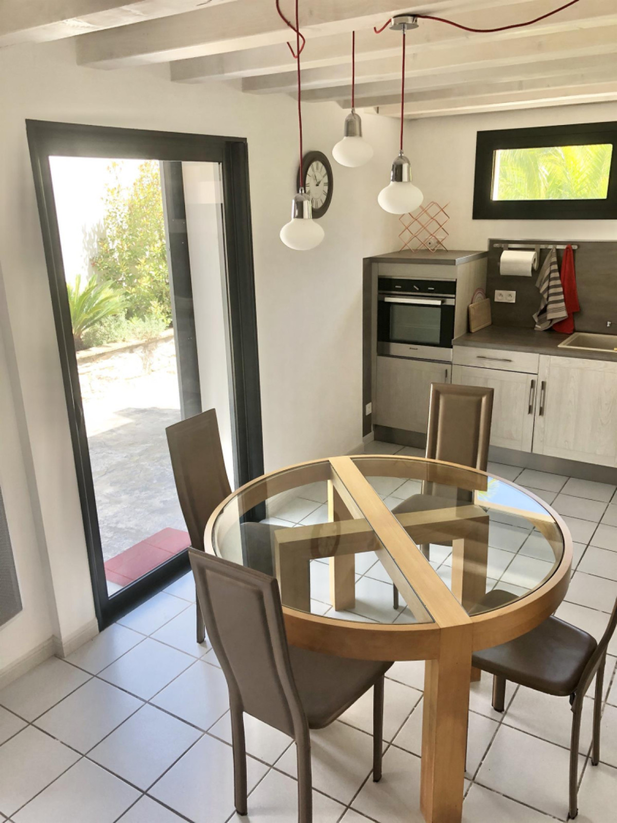 Le gîte se compose au rez-de-chaussée : d’une salle à manger/cuisine toute équipée, une salle d’eau et un WC indépendant. A l’étage : un séjour avec TV et climatisation réversible, une chambre avec 1 lit 160X200cm et une chambrette avec un lit 90X190cm. L’extérieur comprend une cour avec place de parking sécurisée, une vaste terrasse abritée par une paillotte avec salon de jardin et barbecue. Piscine disponible et réservée aux hôtes les lundi, mercredi et vendredi de 14h à 18h30. Lits faits à l’arrivée, linge de toilette inclus. Forfait ménage en option à 50€. Superficie de l’hébergement : 67m² Ce gîte est déconseillé aux jeunes enfants ne sachant pas nager. ATTRAITS TOURISTIQUES : La Camargue, les stations balnéaires de la Grande-Motte et le Grau-du-roi, la cité médiévale d’Aigues-Mortes, Montpellier, Nîmes.