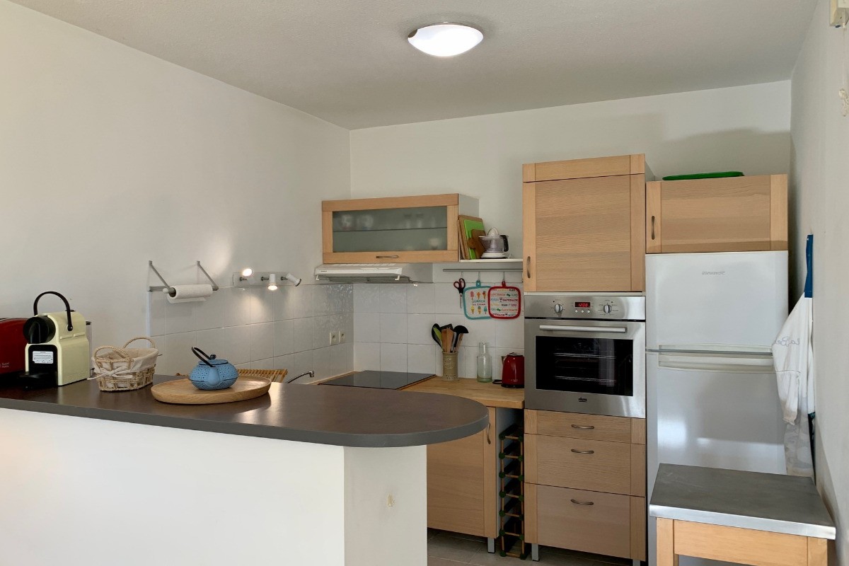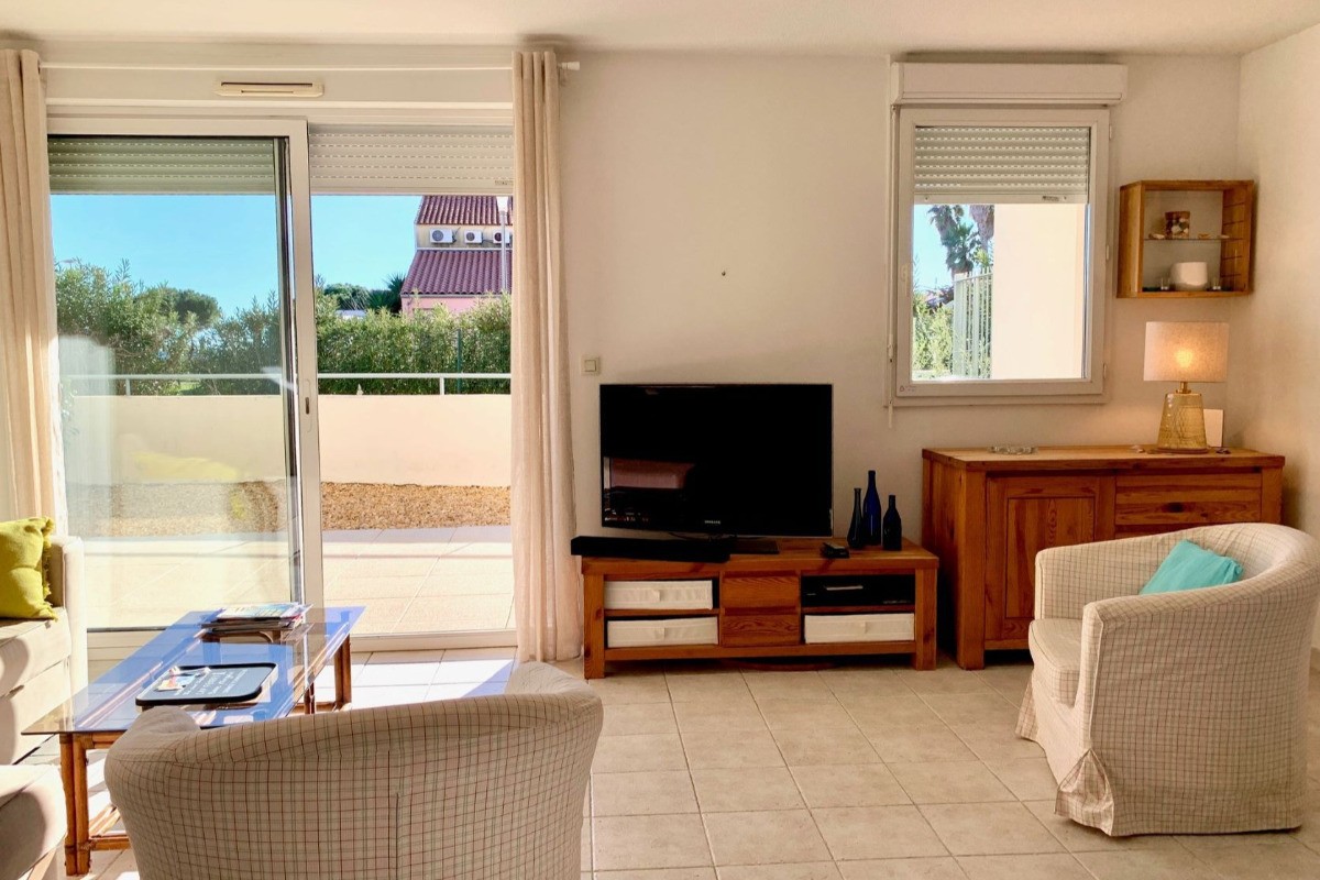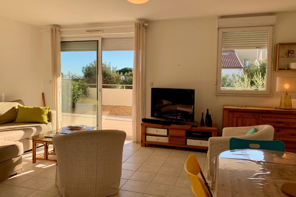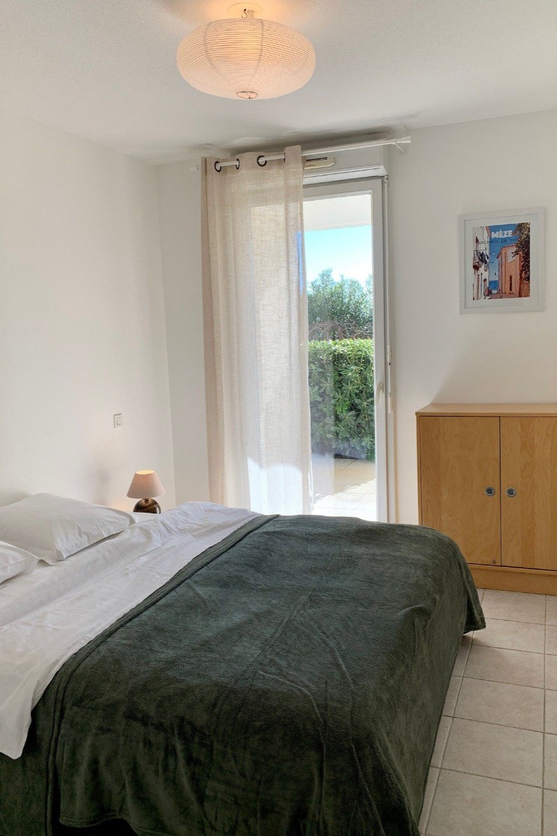 LES PALMIERS ME 168 *** Au rez de chaussée d’une résidence de standing située à deux pas de la plage, de l’école de voile et du port de MEZE, bel appartement confortable et très ensoleillé . Il dispose d’une belle pièce à vivre avec cuisine américaine équipée ( lave-vaisselle, lave-linge, plaque à induction four, hotte aspirante, micro- ondes, réfrigérateur/ congélateur), un salon avec un canapé convertible en 160 cm + TV et un espace repas. Le tout donnant accès à une terrasse. de 21 m²+ jardin de 17m² . La partie nuit comprend une chambre avec un couchage en 160 cm + une salle de bain attenante. Les toilettes sont séparées. Au sous sol garage privatif largeur 2.40 – 4.60 m de longueur . hauteur 1.80 m Ascenseur. Appartement idéalement situé .Tout se fait à pied . WIFI dans le bien . Idéal pour des vacances en amoureux en famille. Les animaux ne sont pas admis-Logement NON FUMEUR -Linge de maison Non Fourni. En période de chauffe un supplément de 35 € / semaine vous sera demandé pour votre consommation durant votre séjour ,et sera à régler sur place le jour de votre arrivée . Fêtes non autorisées dans le bien Classé 3 *** et Label CLEVACANCES 3 Clés PRESTATIONS SUPPLÉMENTAIRES : Ménage de fin de séjour : 60 € Location de linge de maison : nous consulter KIT Bébé: 30 € ( selon disponibilité) Annulation de séjour possible ( sous conditions -nous consulter ) _