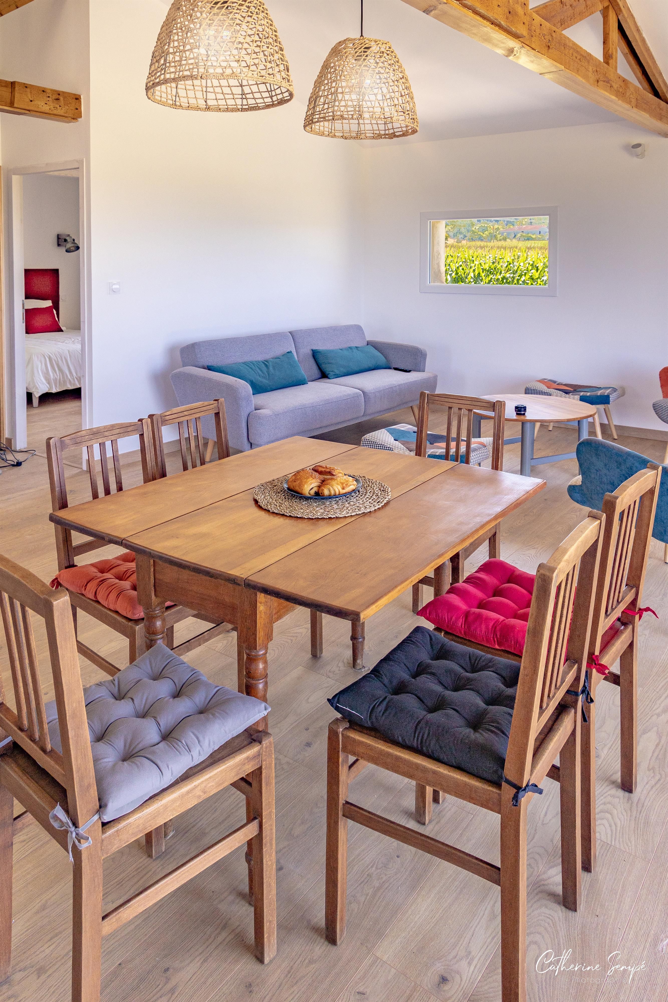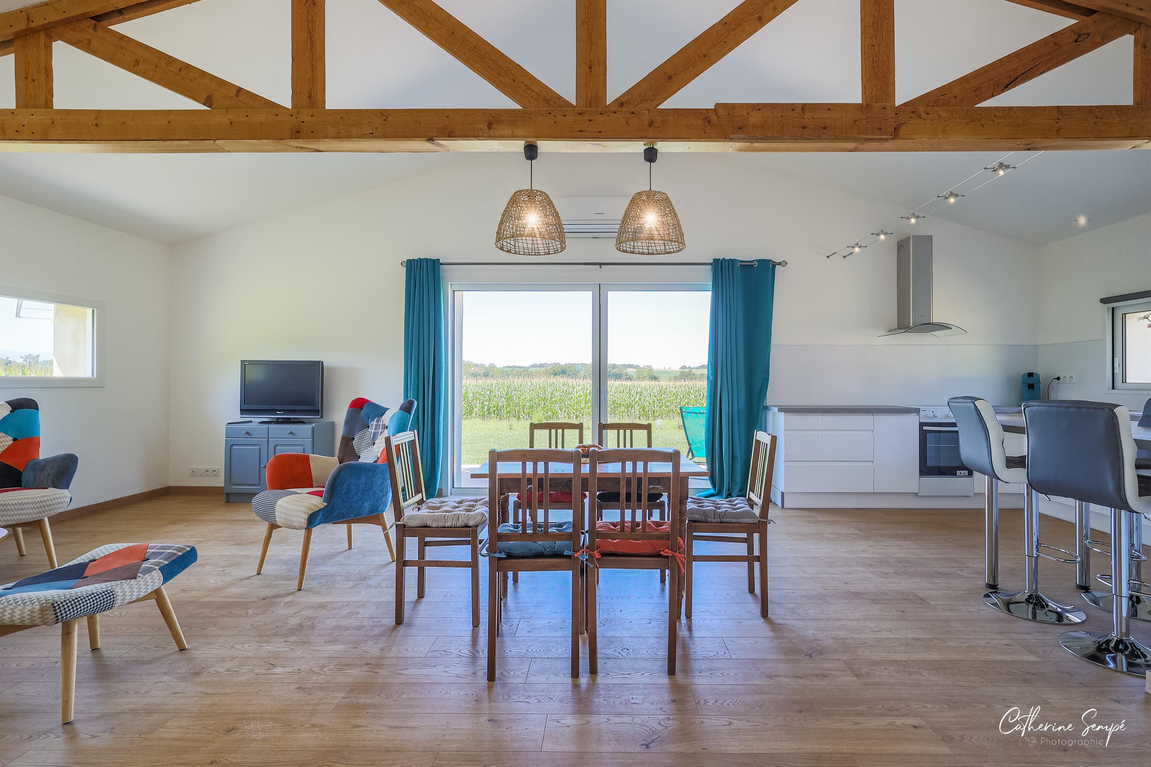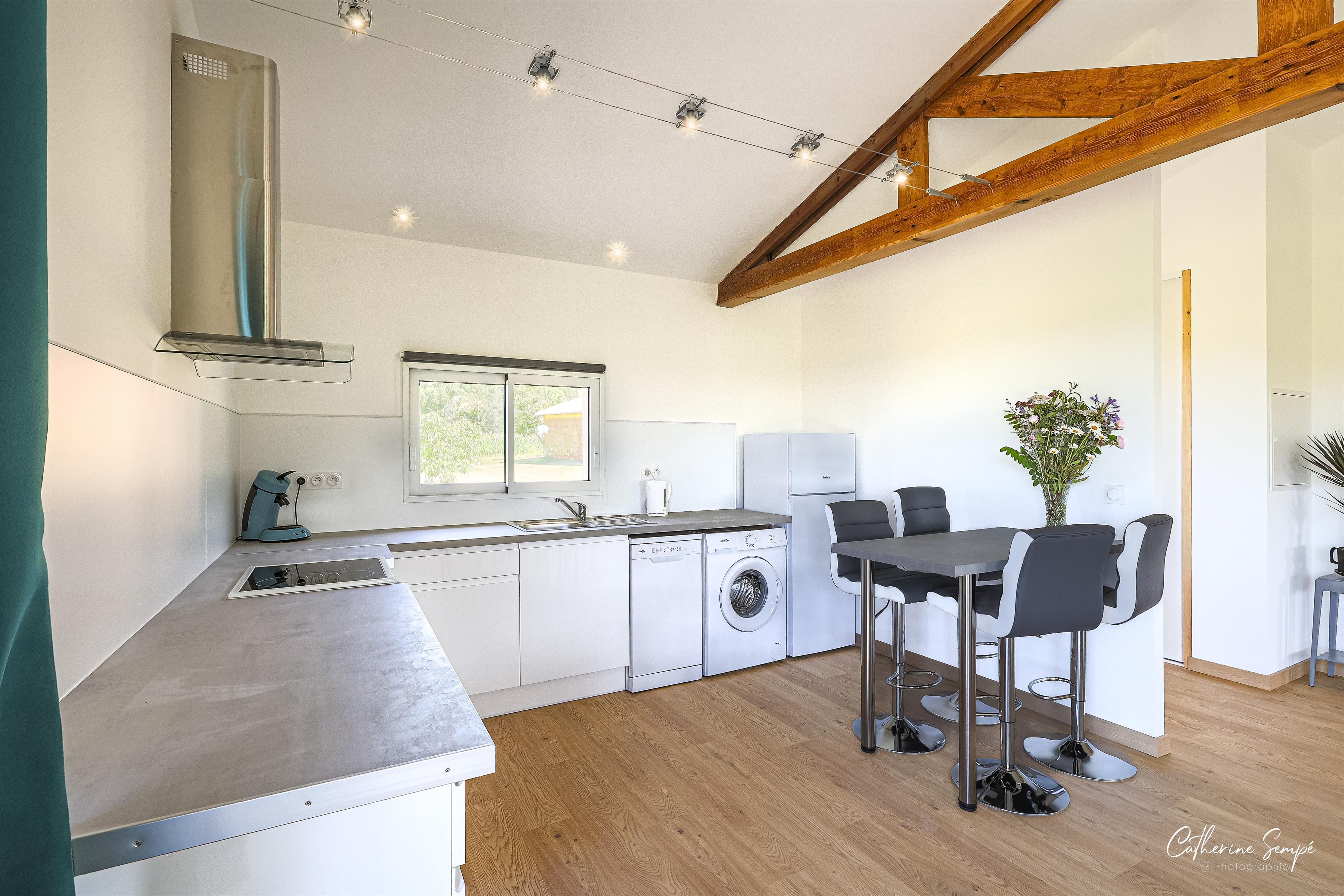 A l’intérieur d’une ferme Gasconne de 150 ans, située dans le village de Sauviac (Gers) au cœur de l’Astarac, se trouve le Gite “Les petits Faulongs”. Ce bâtiment a été converti en une habitation de rez de chaussée, moderne et très lumineuse. Une large baie vitrée s’ouvre sur la terrasse faisant face au massif de Pyrénées et à la campagne Gasconne. Le quartier des Bègues est localisé à l‘extérieur du village de Sauviac. Tous les commerces, prestataires de services, docteur, supermarchés et marchés en plein air se situent soit à Mirande 14 km ou à Trie sur Baise a 17 km. A partir de Sauviac (Quartier des Bègues), la promenade vers la chapelle Saint-Eutrope, son chêne tricentenaire et sa vue panoramique (360o) sur les coteaux gersois et la chaîne de Pyrénées est un endroit idéal pour pique-niquer.Tous les villages voisins proposent des sentiers balisés et des marches guidées sont offertes tous les dimanches matin avec ACTA Gers.Les routes de campagne Gersoise et des Hautes Pyrénées (département voisin) sont le paradis des cyclistes de tous niveaux et des circuits sont proposés. Les amateurs de pêche ont le choix entre la petite Baïse, la Baïse et le lac de Miélan qui offre aussi des sports aquatiques. Les amoureux de la nature peuvent découvrir le lac de Puydarrieux et observer diverses espèces d’oiseaux migrateurs.Il ne faut pas oublier de visiter Auch, la capitale du Gers et de la Gasconie. La ville historique avec son grand escalier, la tour d’Armagnac, la statue d’Artagnan et la magnifique cathédrale Sainte-Marie. L’habitation comprend un espace convivial avec salon (avec canapé lit pour 2 personnes), salle à manger et cuisine. 2 chambres dont l’une avec un lit de 140 et l’autre avec 2 lits de 90, sont séparées par la salle de bain (avec WC, lavabo et douche thermostatique). Le gite est entouré d’un grand jardin de 4500 m2 avec possibilité de faire un BBQ, de jouer à la pétanque ou autres activités.La cuisine est aménagée, avec cuisinière/four électrique, lave-vaisselle, lave-linge et réfrigérateur/congélateur. Un autre bâtiment de ferme, offre un lieu pour se détendre, faire du sport (divers petits accessoires sont mis à la disposition) ou jouer en famille. Chauffage électrique en supplément: relevé de compteur. Le logement est connecté au réseau fibre et peut permettre le travail à la maison.