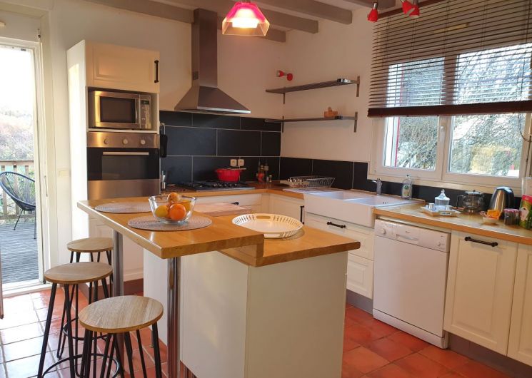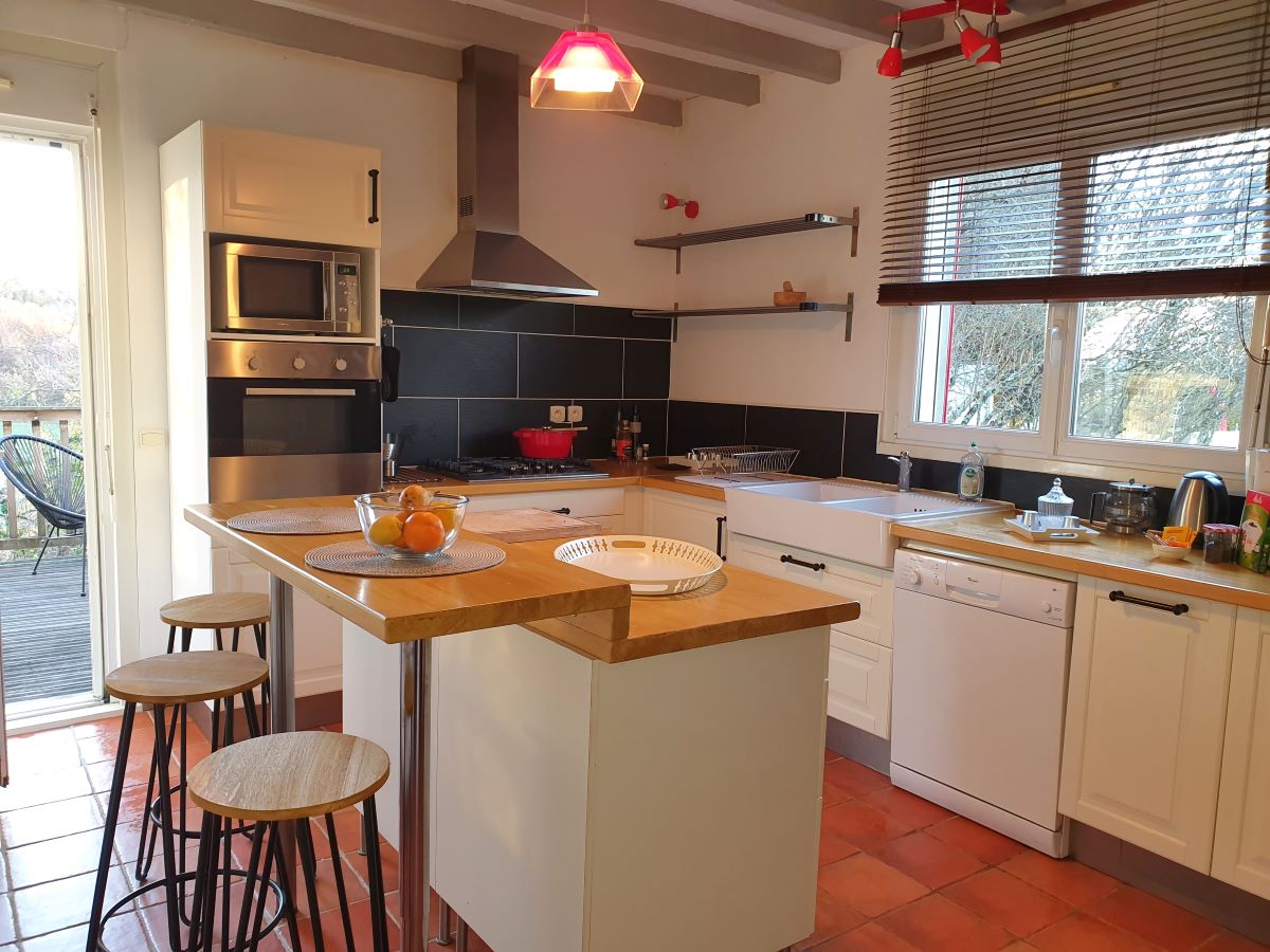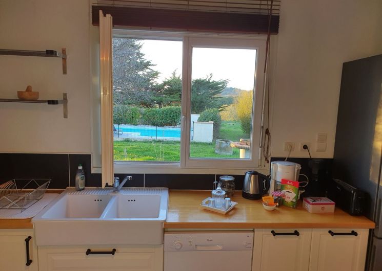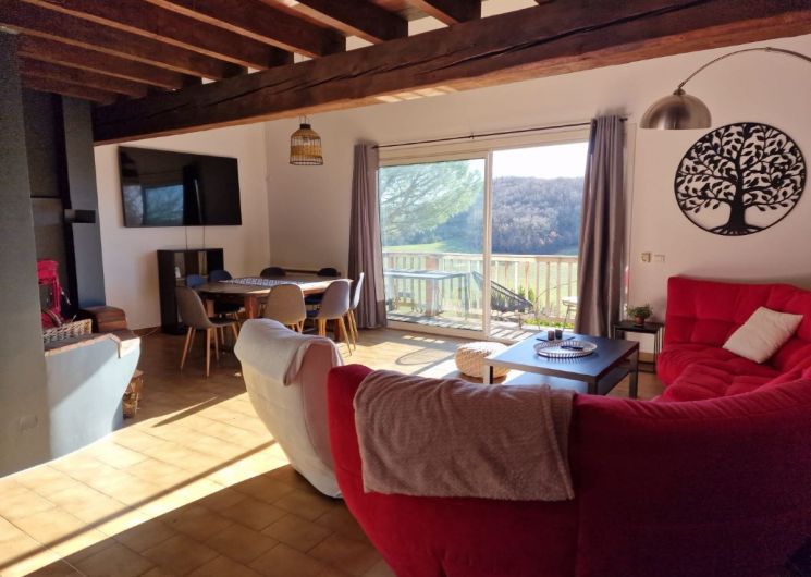 A la frontière entre l’Aude et l’Ariège, venez vous ressourcer sur un domaine de 1,5 Ha, en pleine nature au coeur du pays cathare. Niché sur une colline, les vues sur les Pyrénées et la Montagne noire sont imprenables. La déconnexion est totale. Les randonnées sont multiples. La voie verte se rejoint facilement à vélo, à pied. Mirepoix est à 10min en voiture, lac de Montbel 30min, Carcassonne 30 min, Route des vins 15min, Châteaux cathares 50min, Narbonne 1h20, Toulouse 1h. Le logement de 170 m2 attenant à 2 gîtes de 2 personnes, possède son entrée indépendante. Sa terrasse privative entourée de verdure, offre une vue magnifique sur les Pyrénées. Au rez-de-chaussée, se trouvent la cuisine, un cellier, le séjour salon, une grande chambre, une salle de bain à côté de la chambre et des toilettes. La cuisine entièrement équipée, est composé de 5 feux gaz, un four, un micro-onde, un réfrigérateur congélateur, deux machines à café (Senséo et classique), une bouilloire, un grille-pain, un lave-vaisselle et toute la vaisselle nécessaire. Un cellier attenant à la cuisine possède un lave-linge, un étendoir et des étagères. Un salon / salle à manger possédant une vue plongeante sur les Pyrénées, est attenant à la cuisine. Cette pièce est composée d’un grand et confortable canapé d’angle, une grande table ronde, un poêle à bois. La grande chambre du rez de chaussée possède un lit « King size » (180 x 200). A l’étage, se trouvent 3 autres chambres : 2 chambres spacieuses possèdent un lit « Queen size » de 160x200cm. Une troisième chambre accueille 2 lits simples. Une salle d’eau avec toilette se trouve également à l’étage. Le linge de toilette et le linge de lit sont fournis. Tous nos tarifs sont disponibles sur notre site.