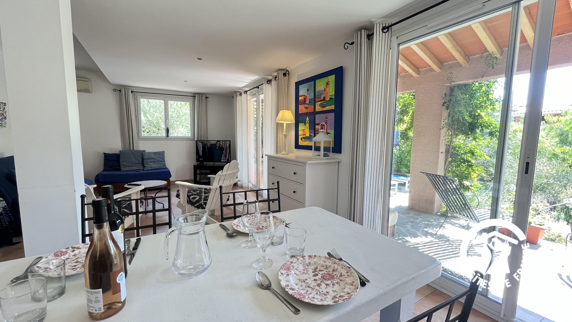 C’est sur ce territoire que naît le vin qui porte le nom de » Banyuls « . Vous découvrirez une plage, un port et des vignes. Située à quelques kilomètres de la location de vacances, la réserve naturelle marine Cerbère – Banyuls, vous permettra d’apercevoir plus de 1200 espèces animales. Un sentier sous-marin a été aménagé pour l’éducation à découvrir en pratiquant le snorkeling ou en plongée. A seulement quelques minutes à pied du centre-ville, un magnifique musée du célèbre sculpteur Aristide Maillol vous attend. A l’automne, chaque année, ne manquez pas la Fête des vendanges, une fête dédiée à la vigne et à l’identité catalane. Séjour avec coin cuisine équipée Salon avec TV Une chambre : 2 lits en 90×190 rapprochables Salle d’eau Wc indépendant Buanderie Le barbecue est accessible depuis le jardin méditerranéen, du propriétaire, étagé en plusieurs terrasses et entièrement clos, qui entoure la maison Salon de jardin et barbecue sur place. Parking privé extérieur devant la maison.