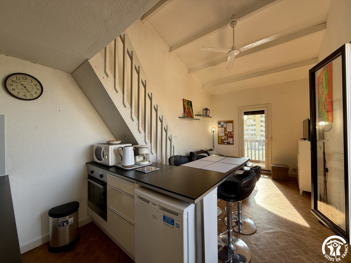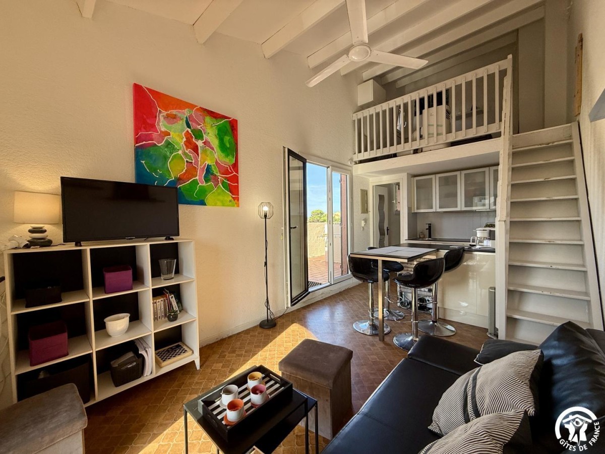 Niché à Port Leucate, notre gîte vous accueille au cœur d’une station balnéaire familiale entre Méditerranée et étangs. Vous profitez d’un logement confortable, à deux pas des plages de sable fin idéales pour la baignade et les sports nautiques. La région séduit par ses paysages contrastés : mer turquoise, étangs peuplés de flamants roses et Corbières sauvages. À proximité, le parc naturel de la Narbonnaise invite à la randonnée et à la découverte d’une nature préservée. Les amateurs de patrimoine apprécieront la cité médiévale de Carcassonne et les châteaux cathares perchés sur leurs crêtes. Leucate Village, authentique et pittoresque, propose son marché coloré et ses petites ruelles charmantes. Pour les gourmands, huîtres et fruits de mer s’invitent à la table des ostréiculteurs sur l’étang. Les plus sportifs trouveront leur bonheur entre voile, kitesurf, vélo et promenades en bord de mer. À quelques kilomètres, Perpignan dévoile son riche héritage catalan et sa vie culturelle animée. Collioure, joyau de la Côte Vermeille, séduit par ses couleurs et son ambiance artistique. Enfin, après une journée d’excursion ou de plage, le gîte offre calme et détente pour des vacances inoubliables. La résidence se trouve à 100m de la plage de sable fin, avec un accès piéton depuis le logement. Situé au deuxième et dernier étage, vous profiterez d’une belle terrasse idéale pour profiter des belles soirées estivales, équipée d’un salon de jardin. -Séjour-cuisine, équipé d’un canapé convertible deux places, donnant sur un balcon avec vue mer. -une mezzanine ouverte sur le séjour avec deux lits en 90, pouvant être rapprochés. -salle d’eau avec WC et lave-linge. -parking privatif dans la résidence. Possibilité de ménage de fin de séjour à réserver lors de votre arrivée 50€.