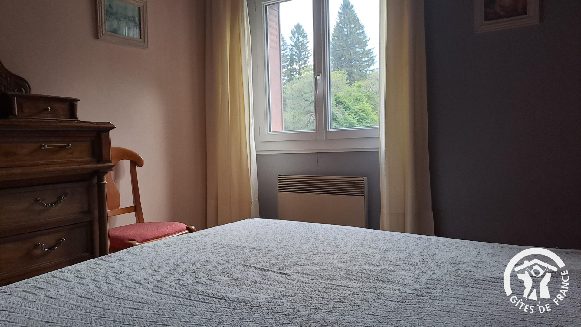 A 680m d’altitude, le gîte « Les Sapins » est quasiment les pieds dans l’eau, face à la base de loisirs et zone de baignade, sur la rive opposée.