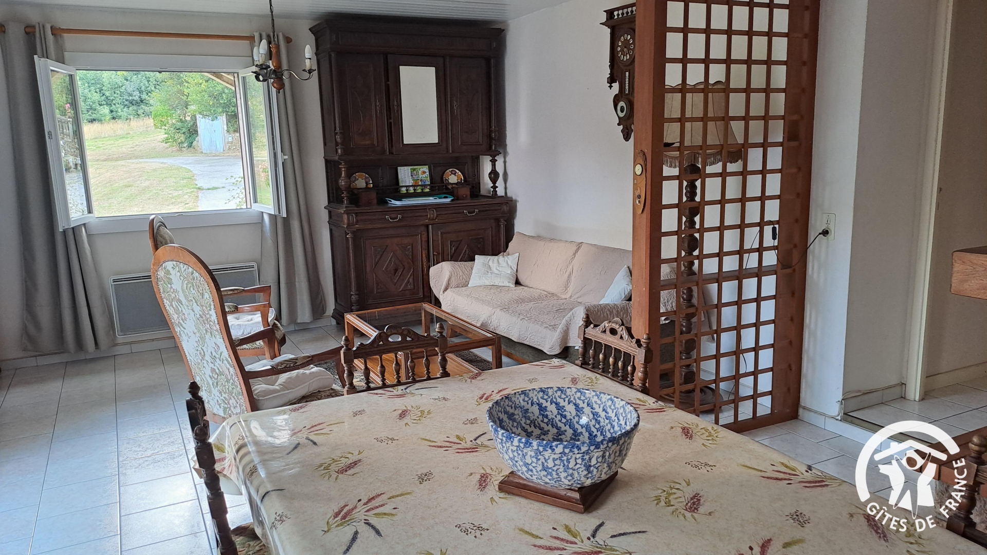 Gîte mitoyen au logement du propriétaire, sans vis-à-vis, avec jardin privatif et jolie vue sur le lac des Montagnès. Dans le jardin se trouve également un portique et un petit étang.