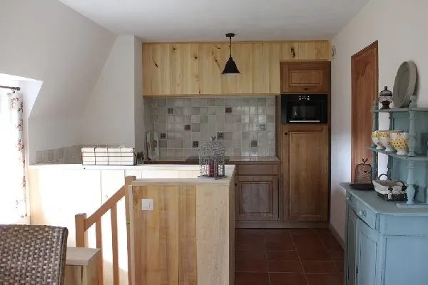 Séjour avec coin repas et coin salon (télévision, Wifi…), cuisine américaine tout confort, 2 chambres (1 lit 160 et 2 lits 90), salle de bains avec baignoire, 2 WC.
