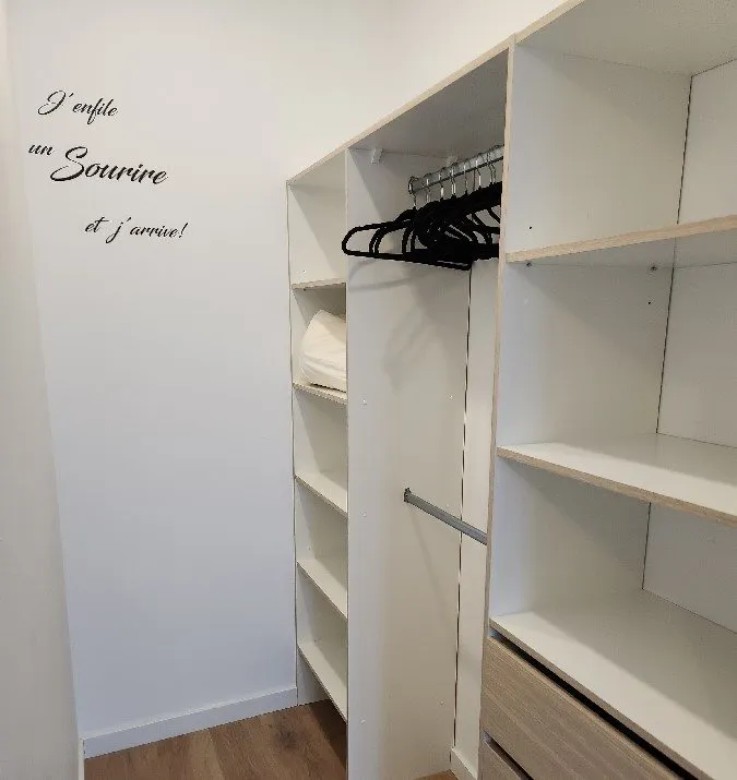 Proche des commerces et à proximité stationnement et réseau bus. Logement T2 40 m² meublé, accès 1 étage puis plain-pied. 1 chambre lit 160/200, 1 cuisine équipée avec salon. 1 salle d’eau avec WC. Salon de jardin et transats accessible par l’extérieur.