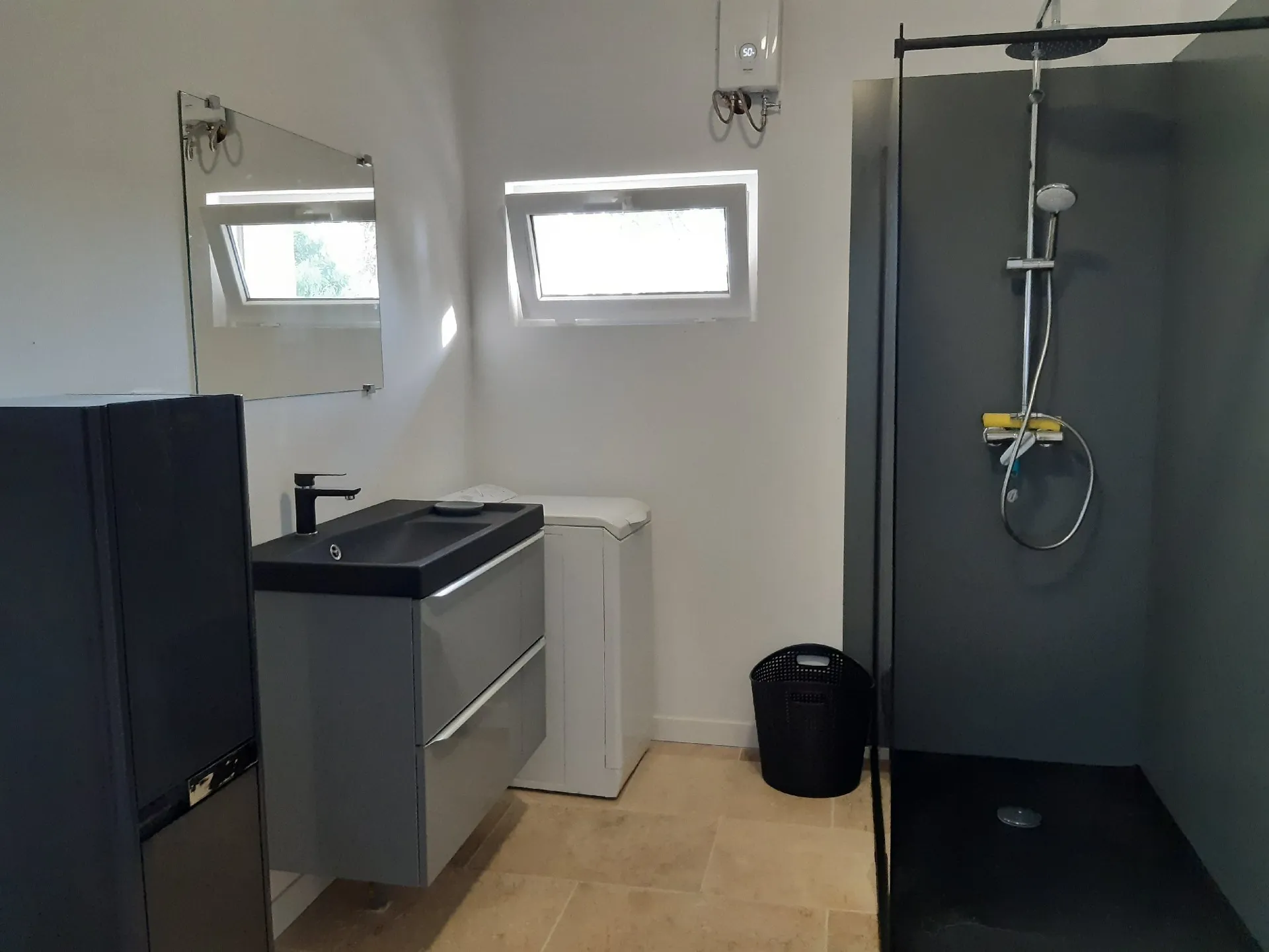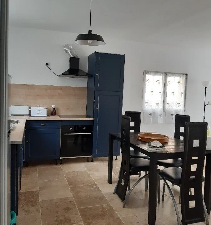 Cette maison est entièrement équipée pour l’équipement de cuisine et l’électroménager, volets roulants solaire, petit jardin clos pouvant accueillir des animaux en toute sécurité, et d’y garer un véhicule, petite terrasse a l’abri du vent permettant les déjeuners a l’extérieur, internet à disposition sans supplément.