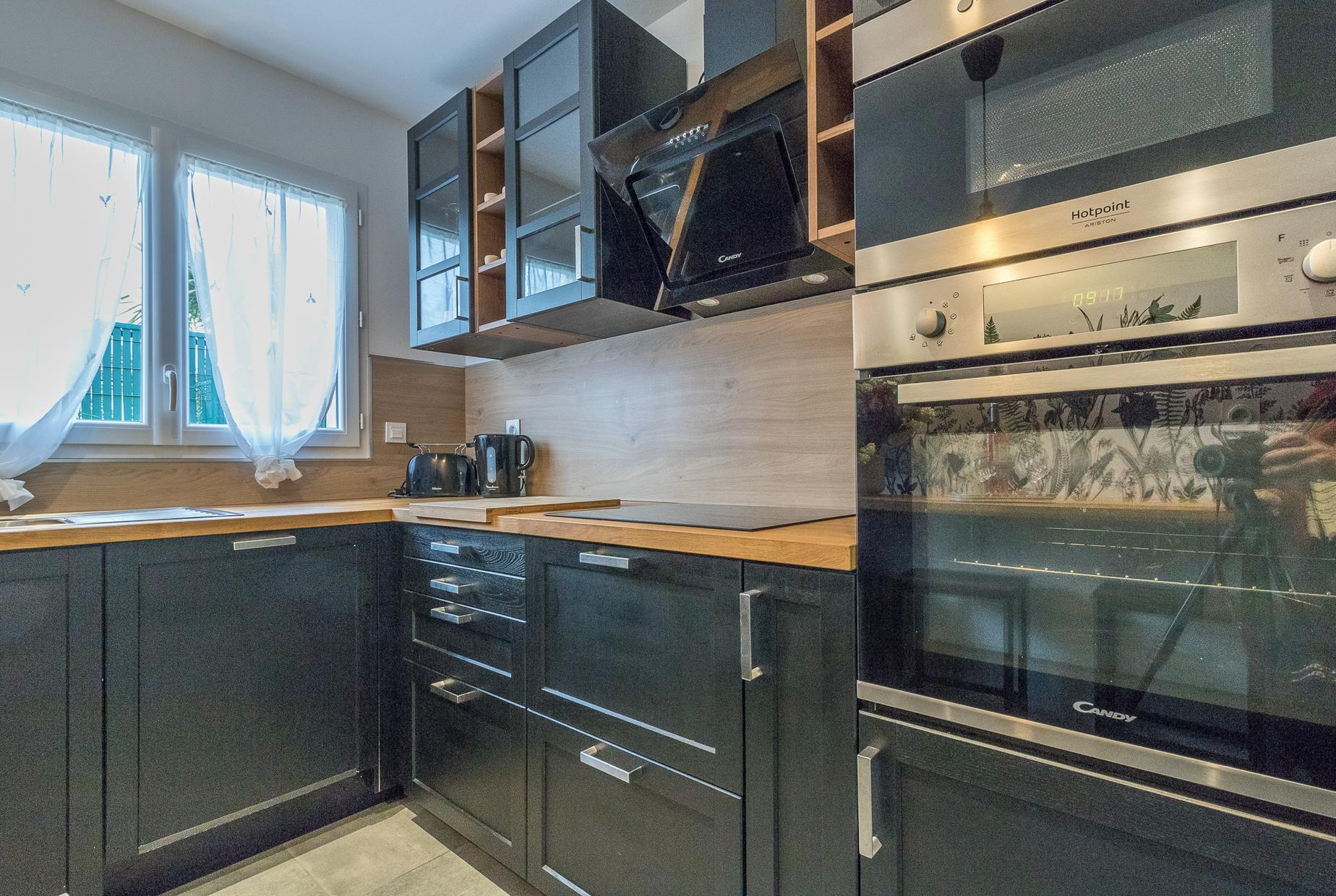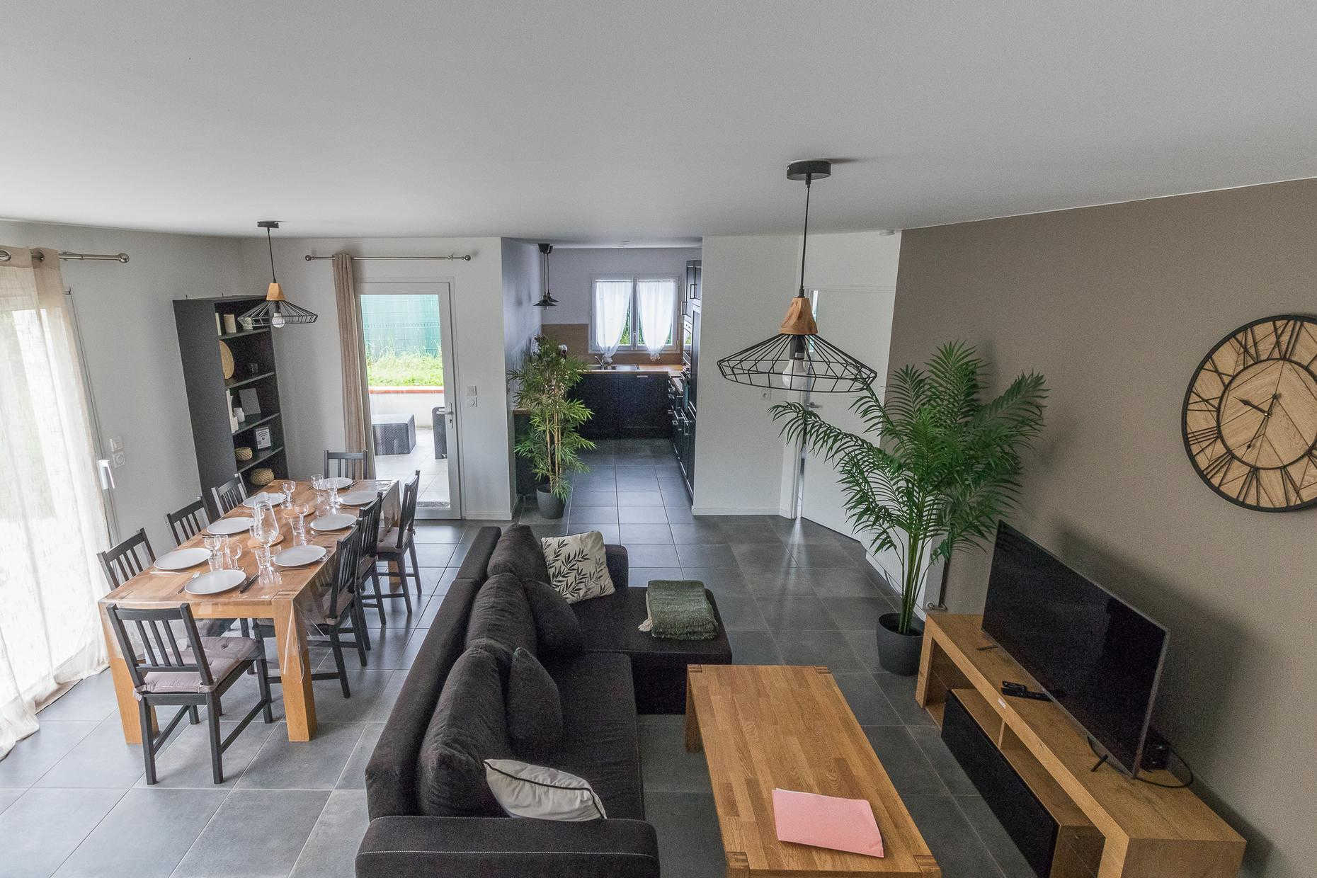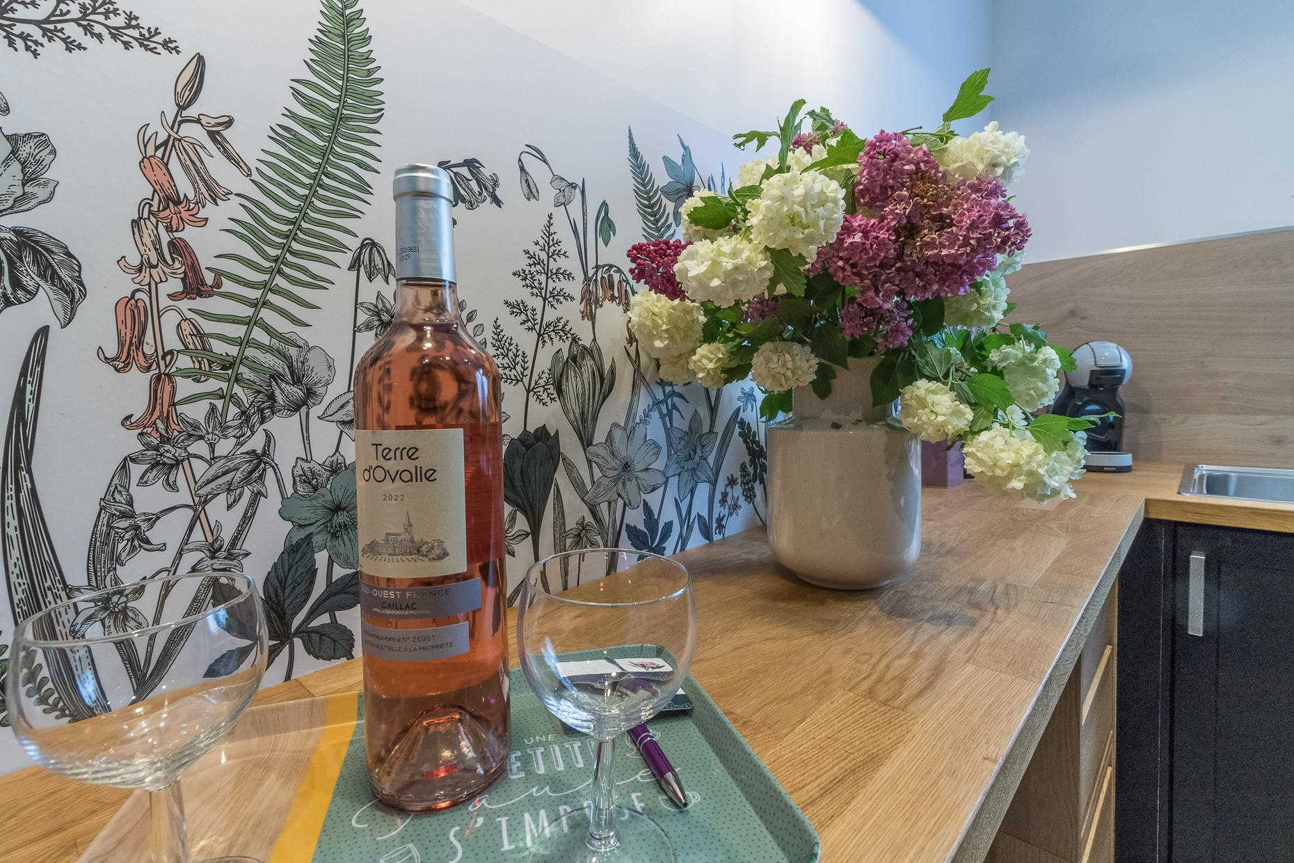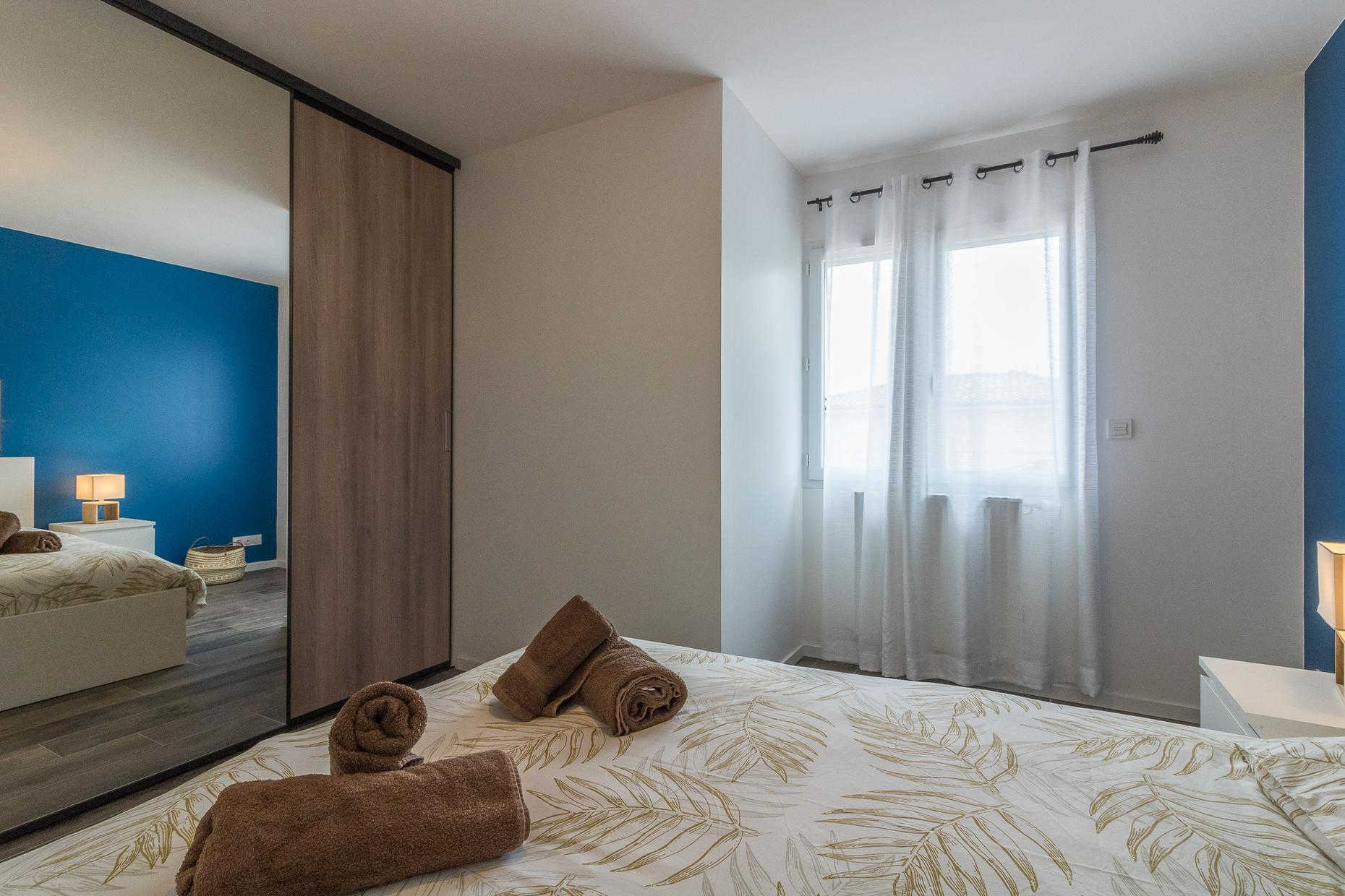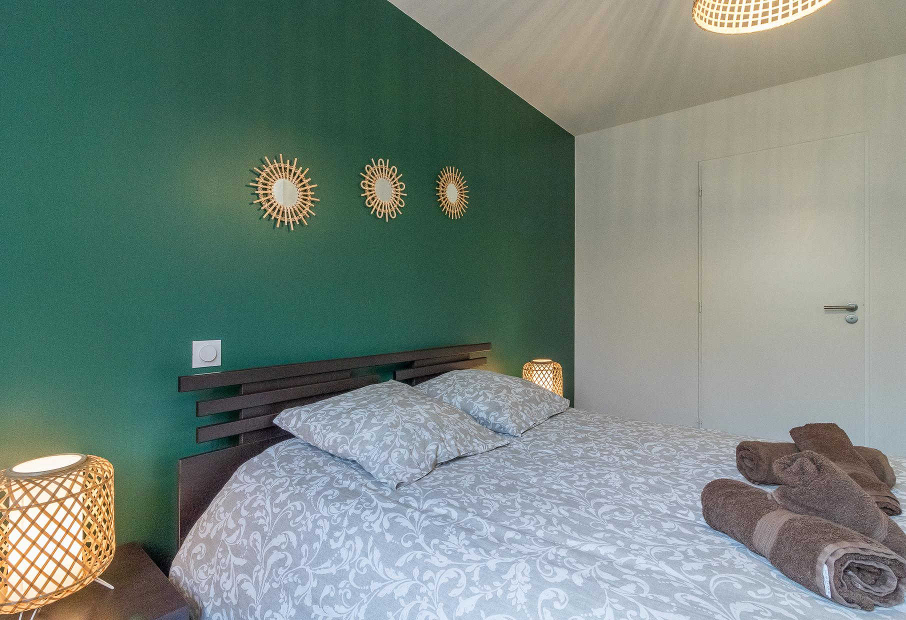 Au rez-de-chaussée : 1 chambre (1 lit double en 140*190cm) avec salle d’eau privative, un salon lumineux, une cuisine entièrement équipée, une entrée et des WC.