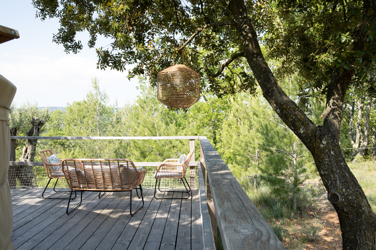 Nos yourtes sont nichées dans la nature au sein d’une propriété familiale, à l’ombre des chênes verts et sans vis-à-vis avec des vues imprenables sur les paysages forestiers et le Mont Ventoux. Chacune est soigneusement placée sur une grande plateforme en bois sur pilotis avec le jacuzzi privé et le coin salon extérieur, où l’on peut profiter d’un panier apéritif en toute tranquillité. Une toilette sèche privée est aussi disponible à chaque yourte pour plus de confort.