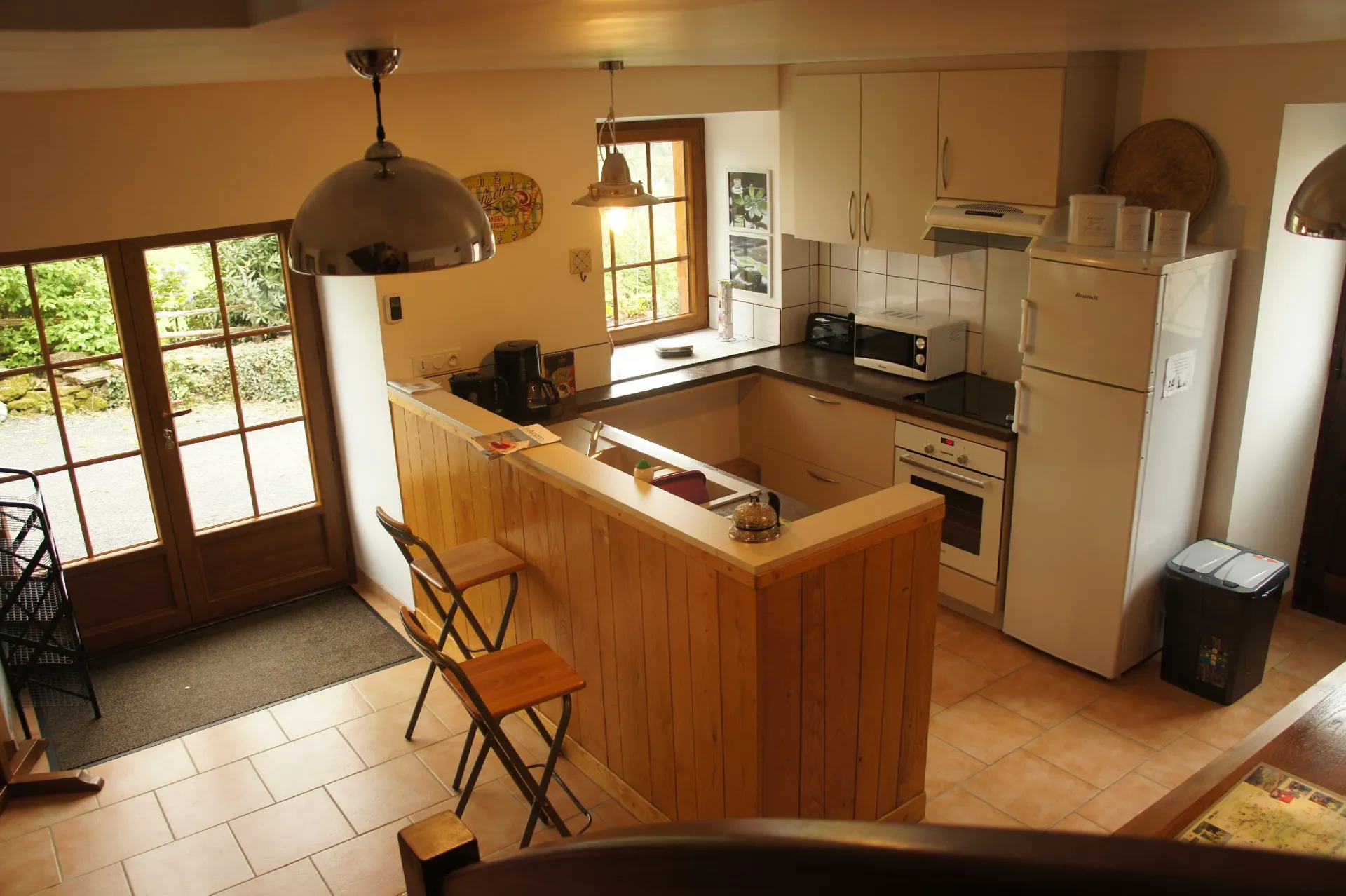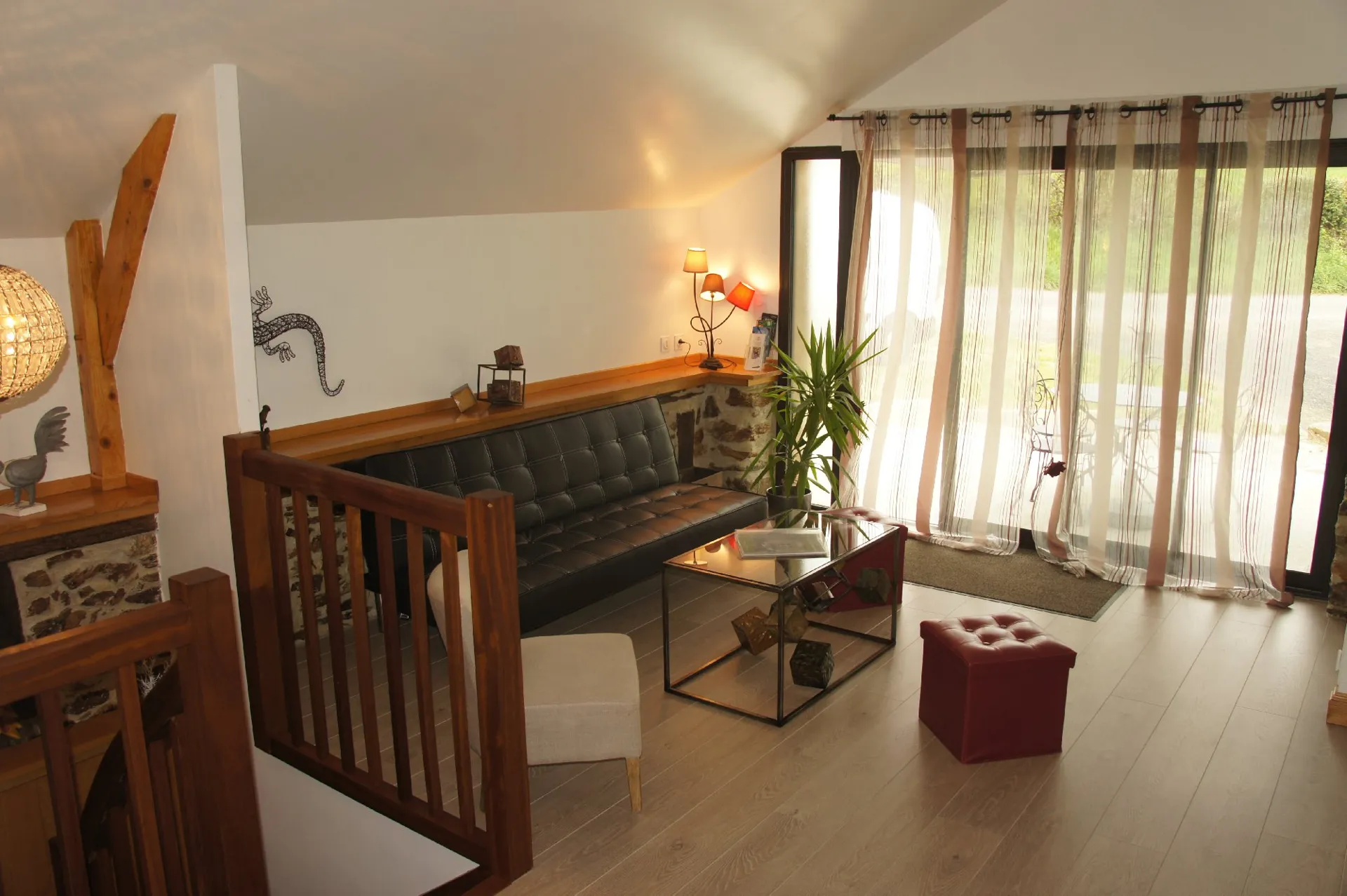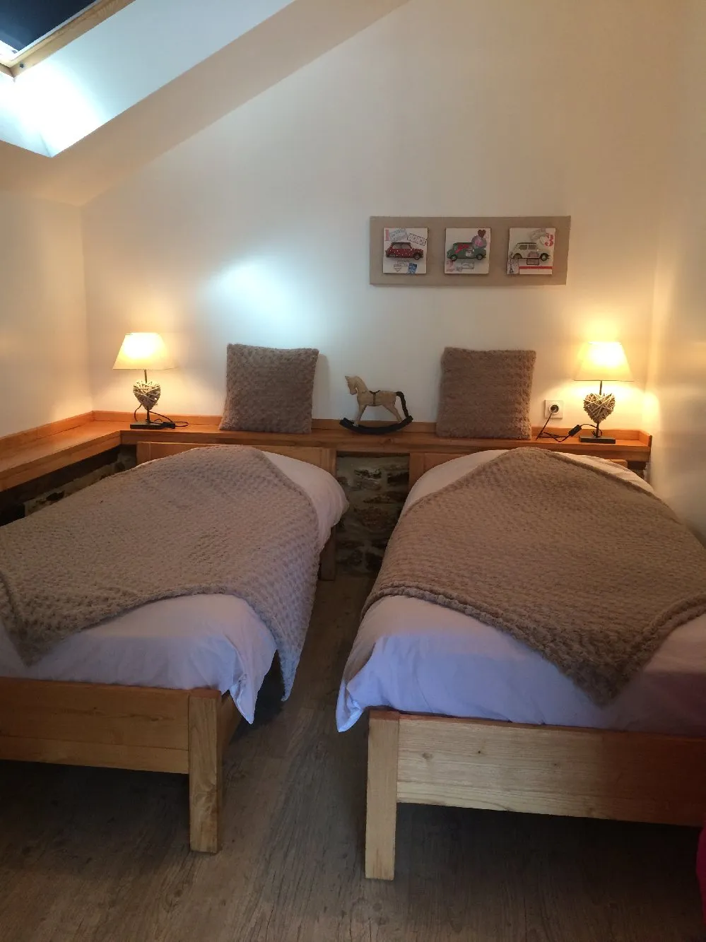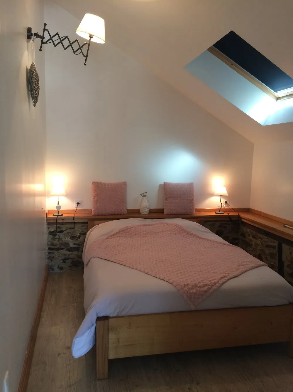 Gîte indépendant, 2 niveaux, près de la maison du propriétaire, dans un hameau. Le gîte vient d’être rénové. 2 chambres (1 x 140, 2 x 90), salon (mezzanine, canapé 130, télévision/DVD), salle d’eau, buanderie (lave-linge, sèche-linge), coin cuisine (lave-vaisselle), salle à manger (cheminée, poêle à granulés), terrasse (25 m²) et terrain (700 m²) non clos privé. Salon de jardin, barbecue.