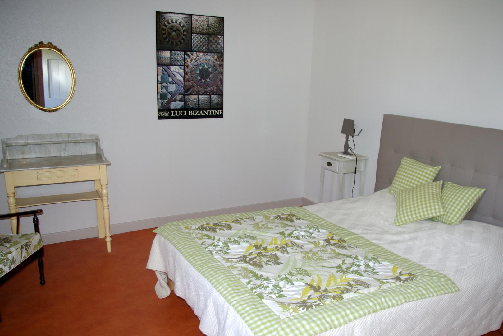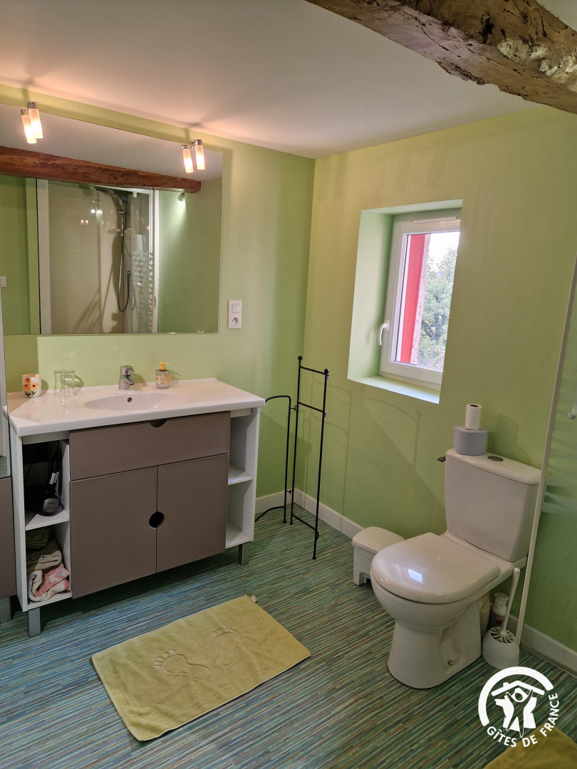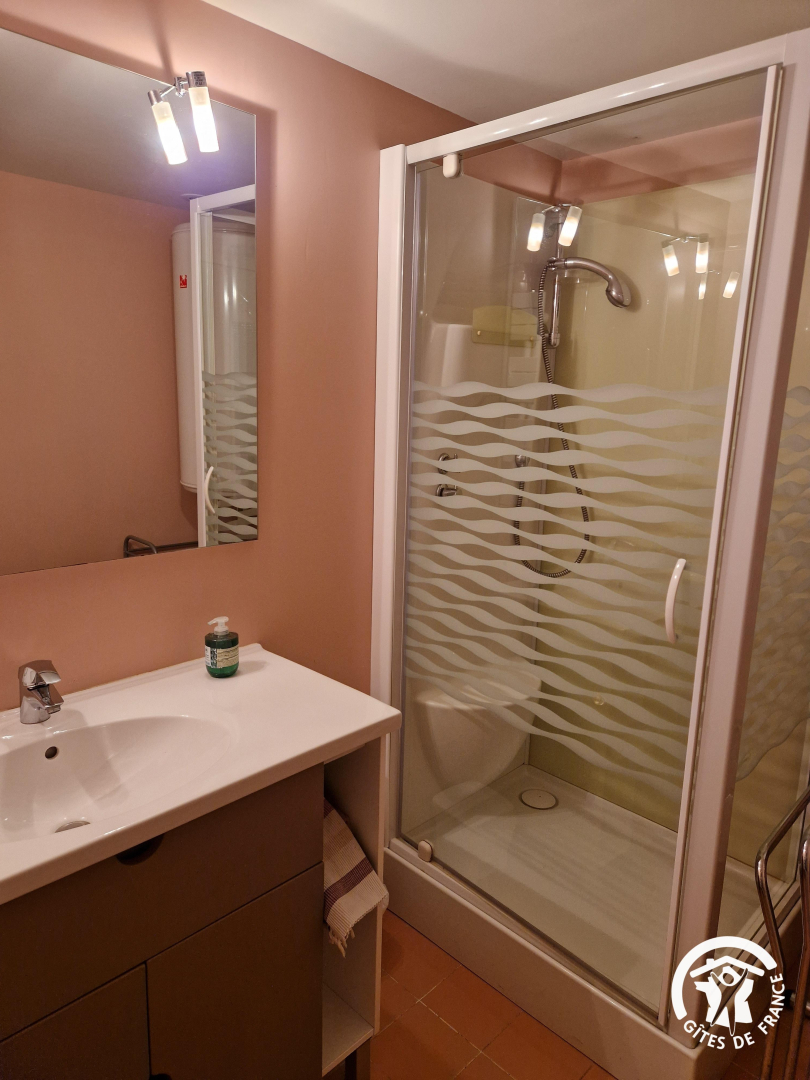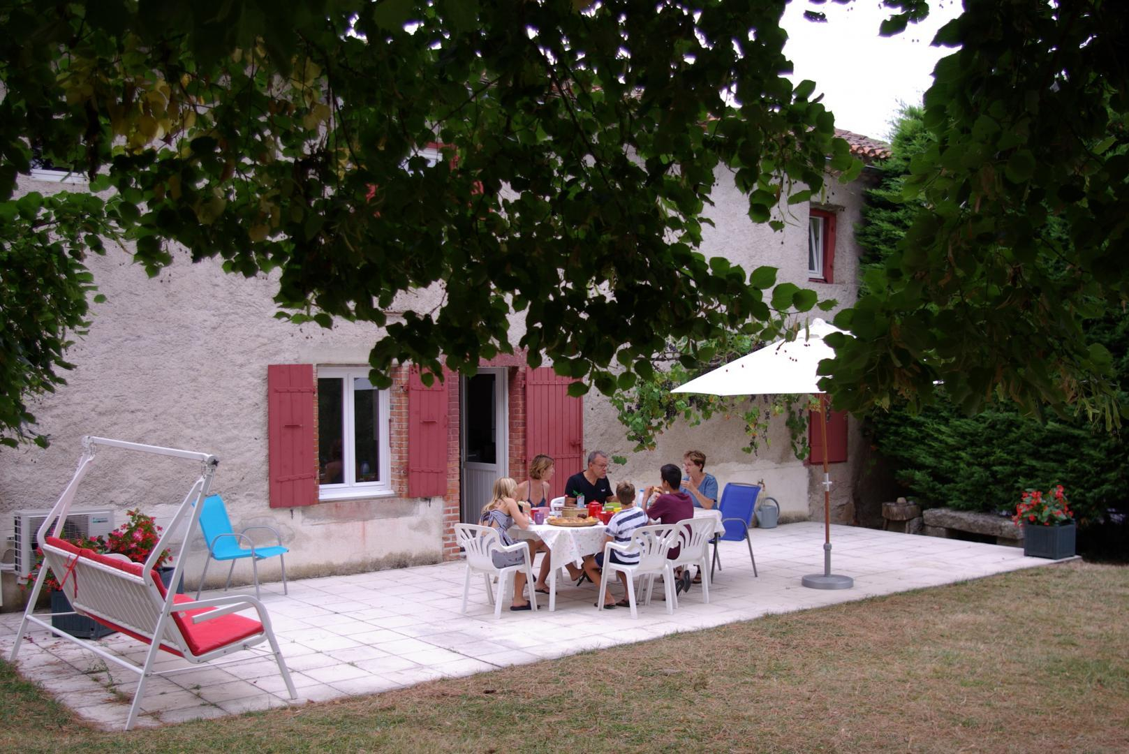 Maison indépendante, à proximité de l’habitation des propriétaires, avec des espaces séparés. Au rez-de-chaussée : grande cuisine bien équipée (cafetière à filtre, senseo, batterie de cuisine, cocotte, batteur…), petit salon, salle d’eau, wc. La cuisine donne sur une terrasse avec salon de jardin, parasol, balancelle. le parc arboré s’ouvre sur une vue dégagée sur la campagne. A proximité, le boulodrome invite à la convivialité.